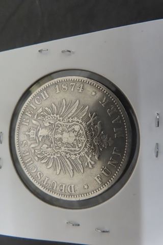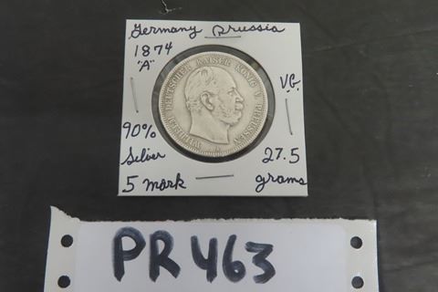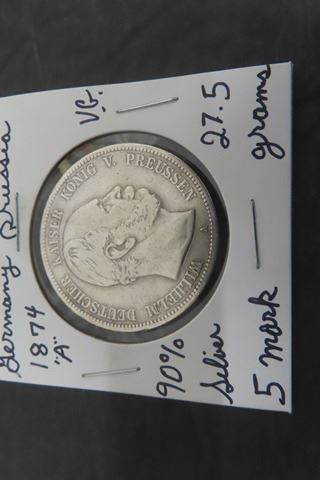 1874 Germany Prussia 5 Marks 90% Silver- 27.5 Grams