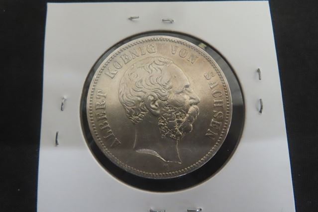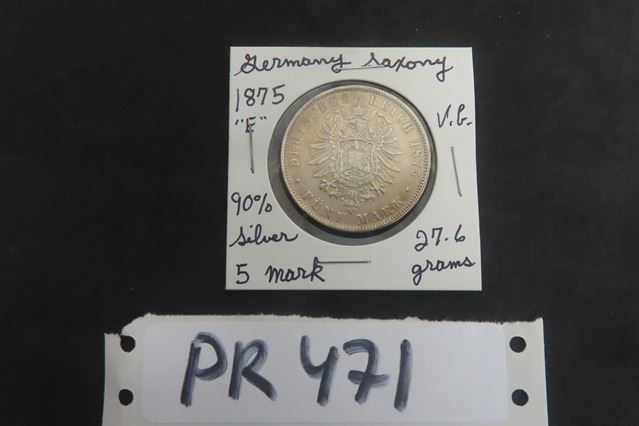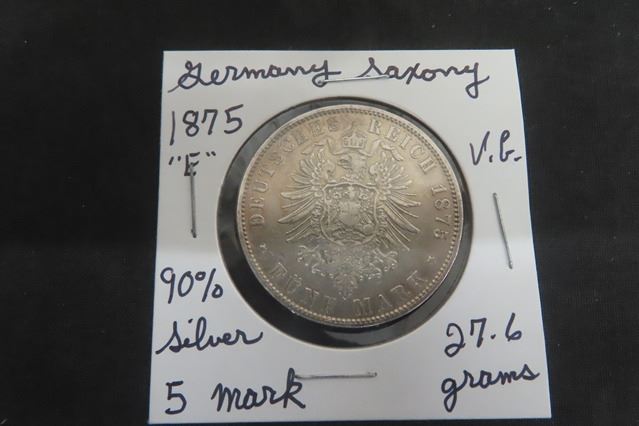 1875 Germany Saxony 5 Mark Coin 90% Silver 27.6 Grams
