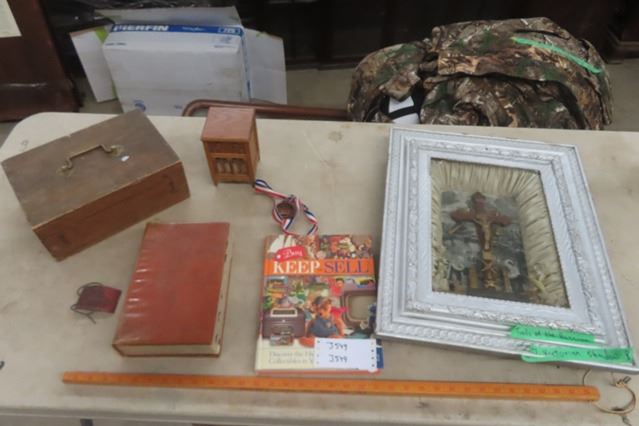 1877 Religious Shadow Box, Dictionary, Yard Stick Wooden Storage Box, Antique Reference Book