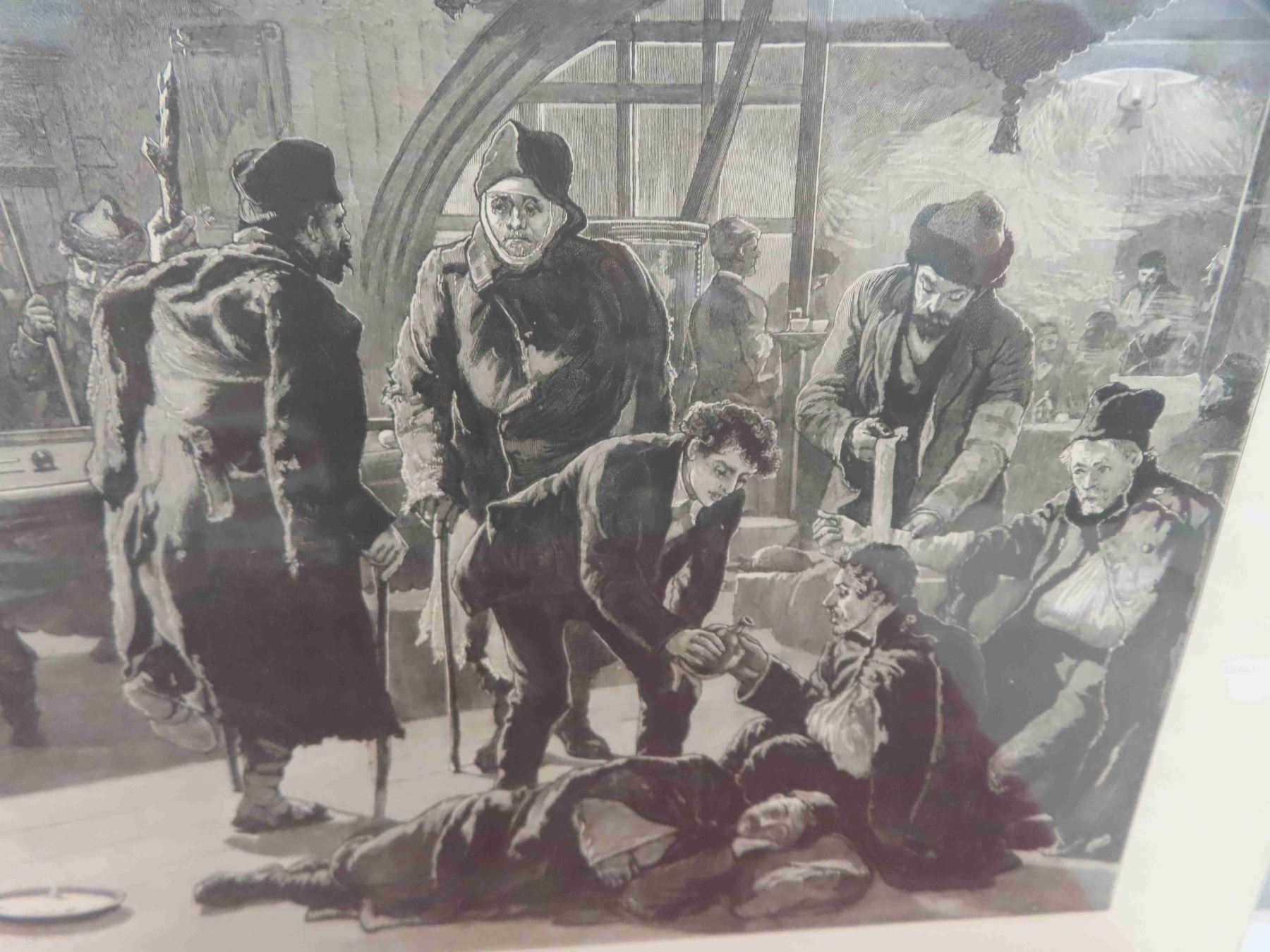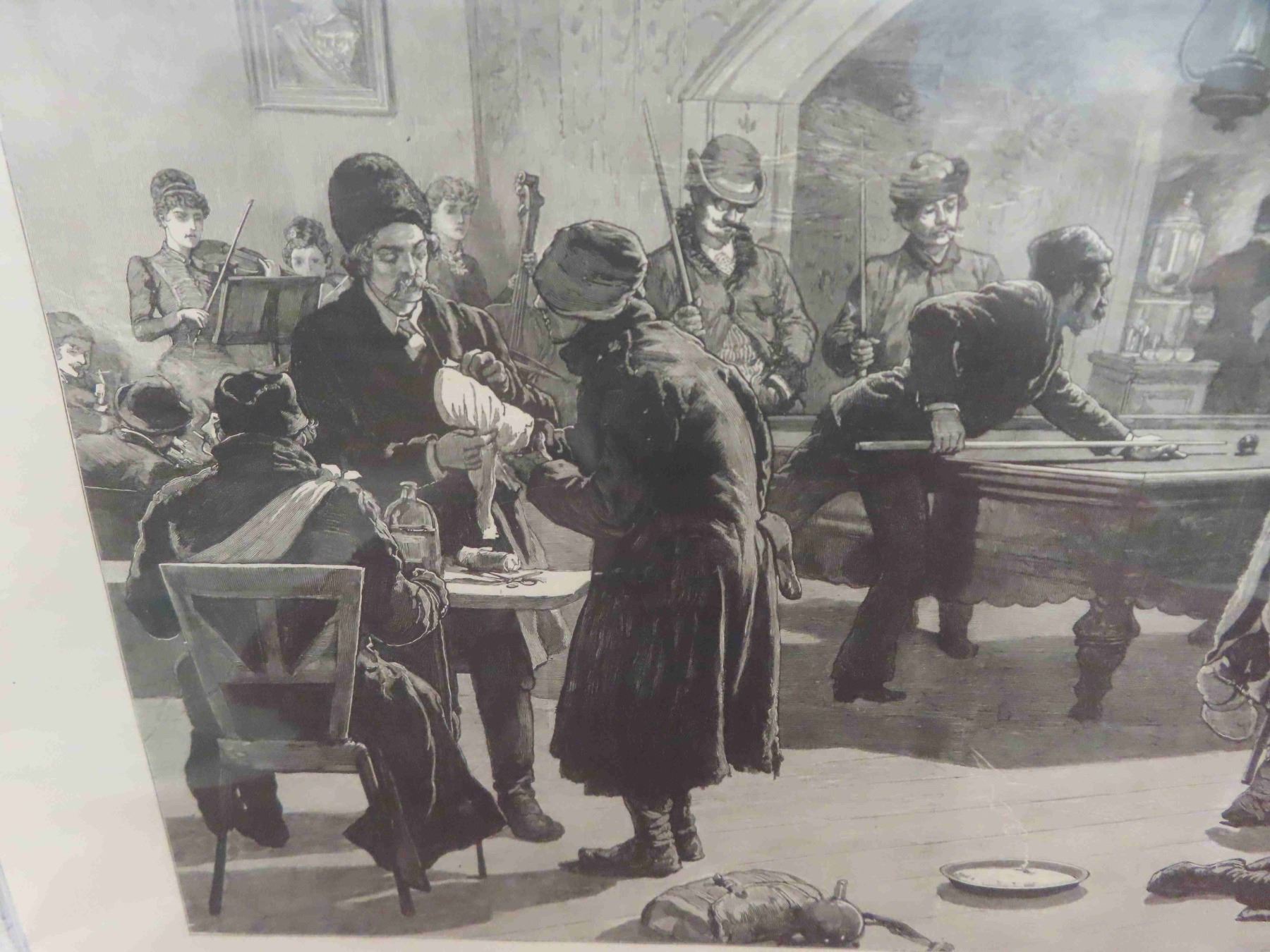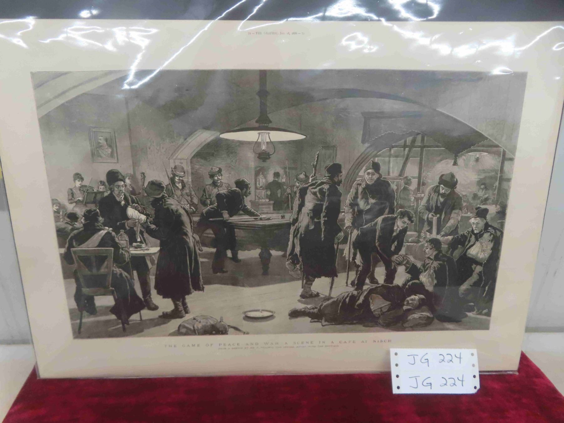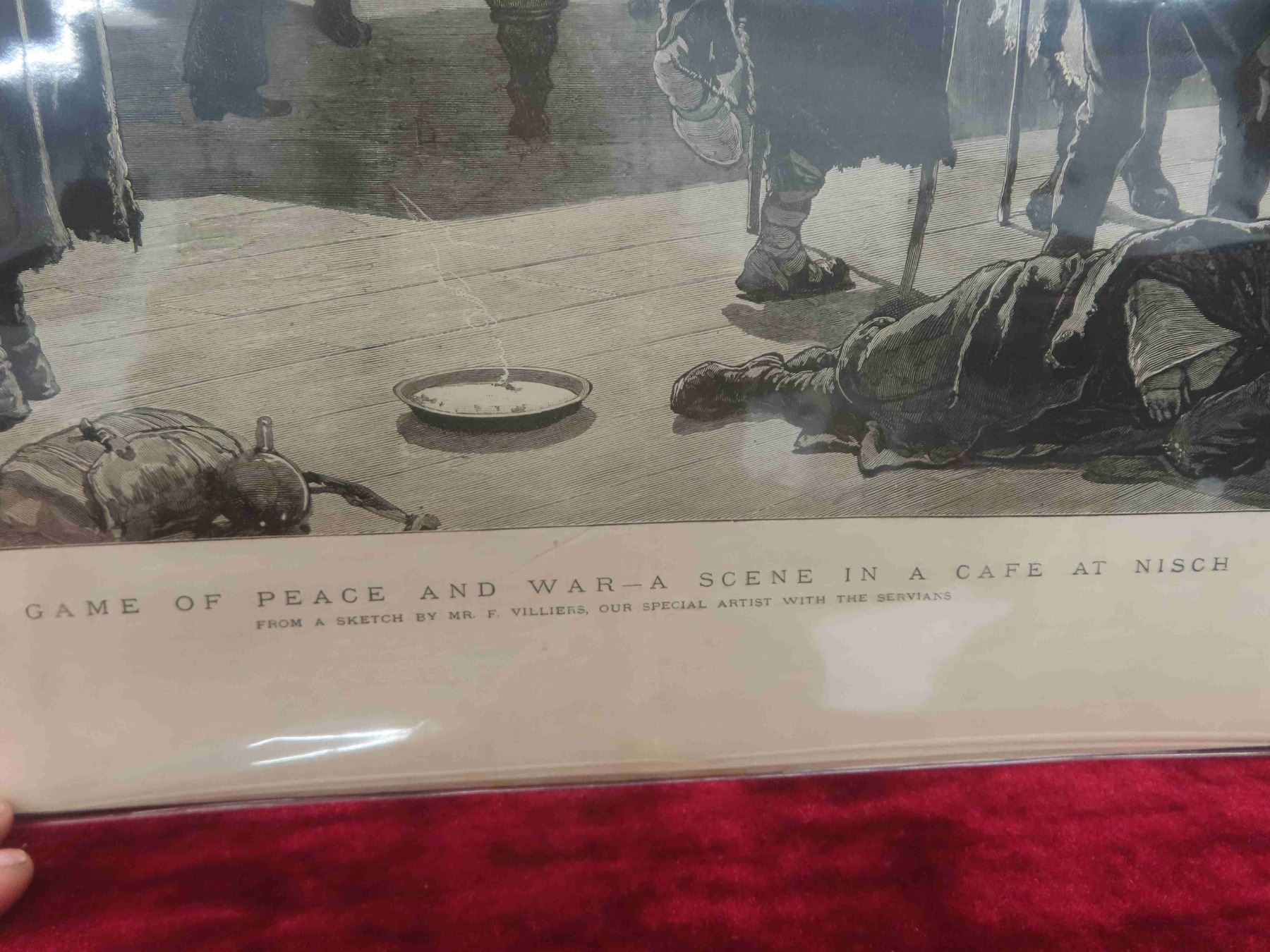 1886 The Graphic Print 'The Game of Peace and War' Scene in a Café at Nisch 16'' x 23 1/2''