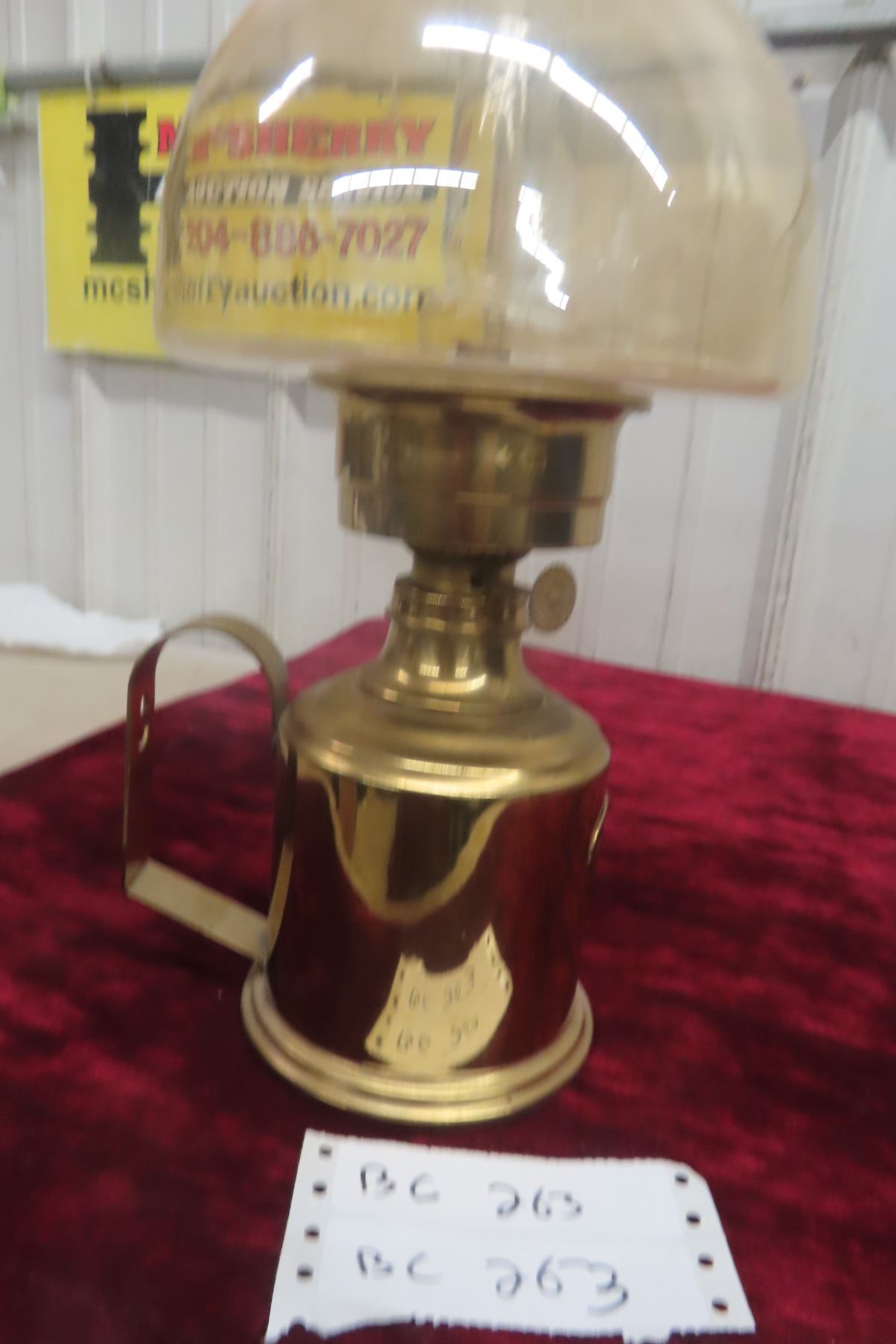 1887 Pernisch Brass Coal Oil Lamp with Wall Mount or Carry Handle