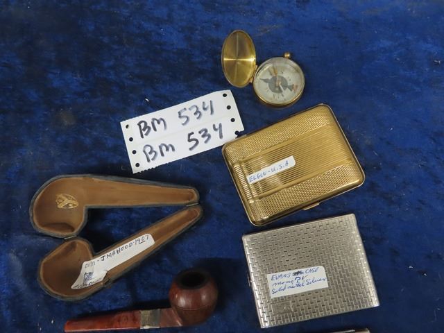 1907 Pipe & Case, 2 Cig Holders, 2 Pocket knived, & Compass