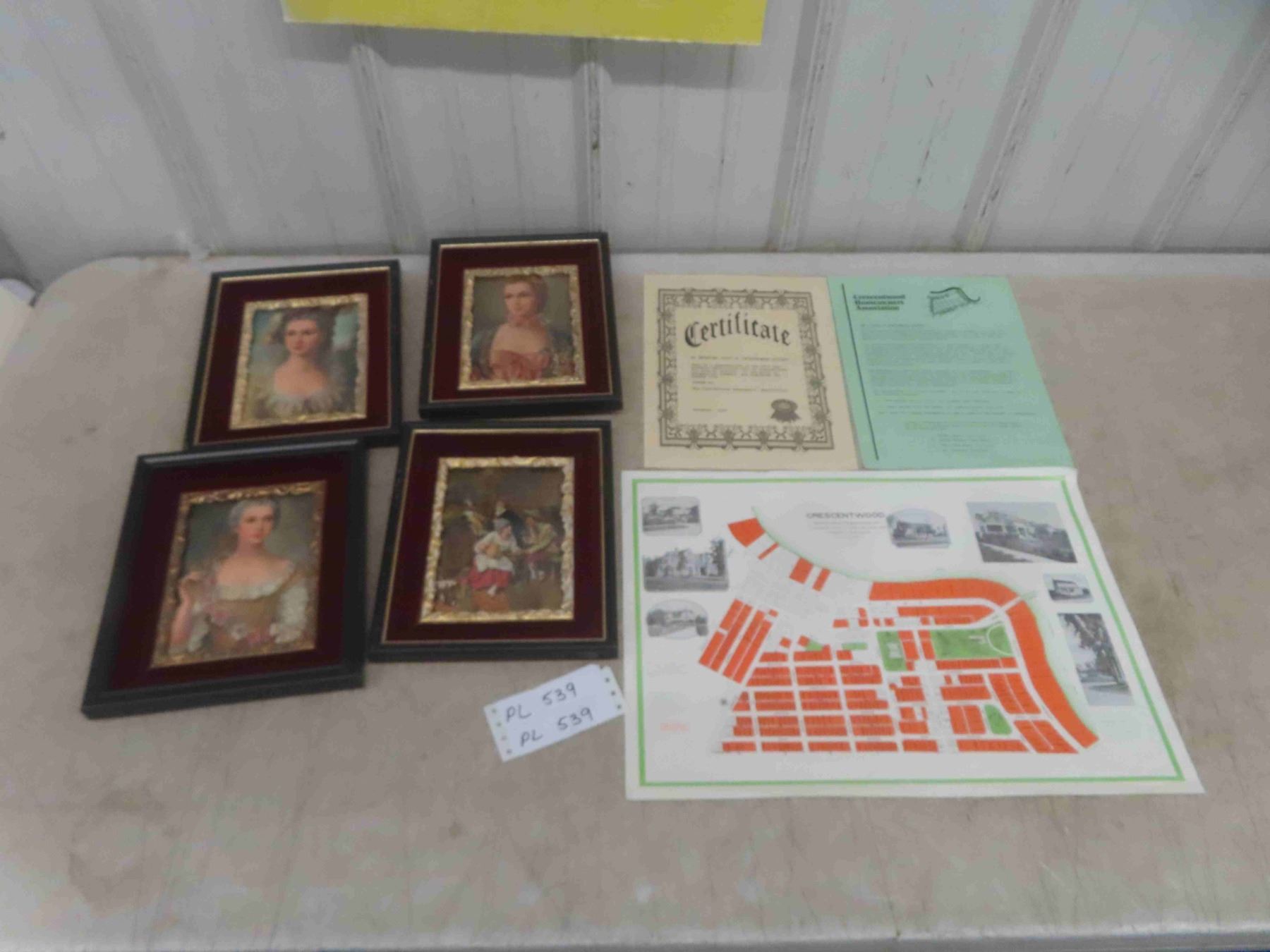 1917 Crescentwood Reproduction Map with Certificate of Authenticity , 4 Framed Pictures