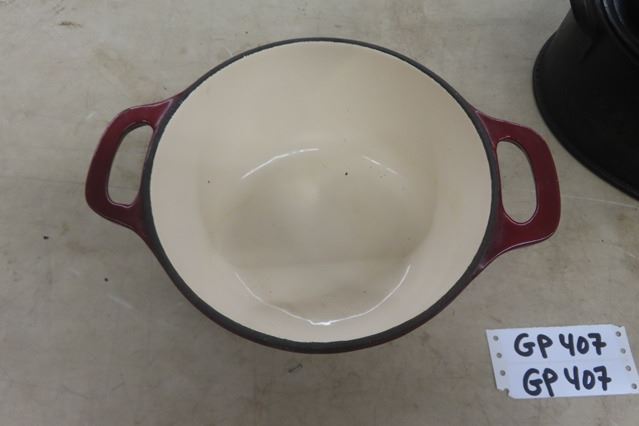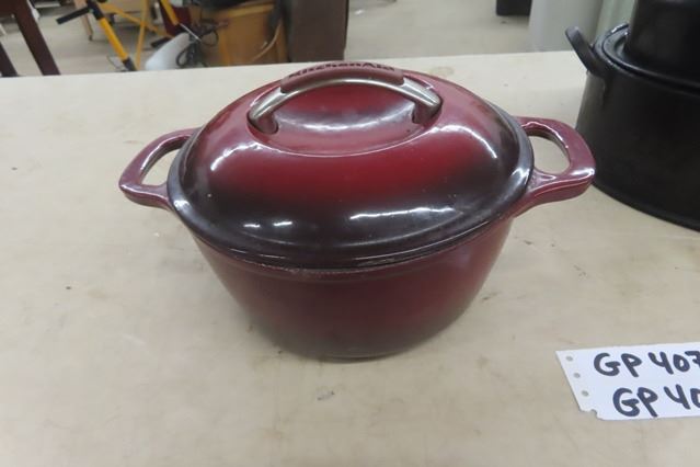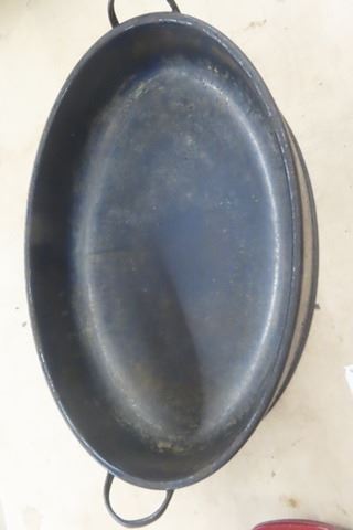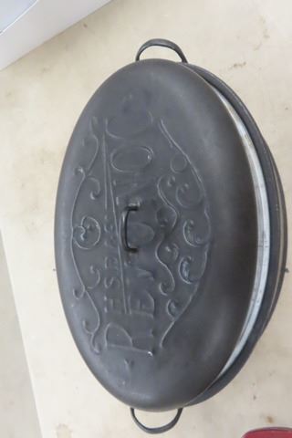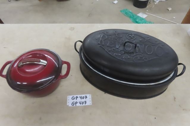 1920s Hudson Bay Co Revonoc Store Promo Roasting Pan with Kitchen Aid Heavy Cast + Porcelain Pot