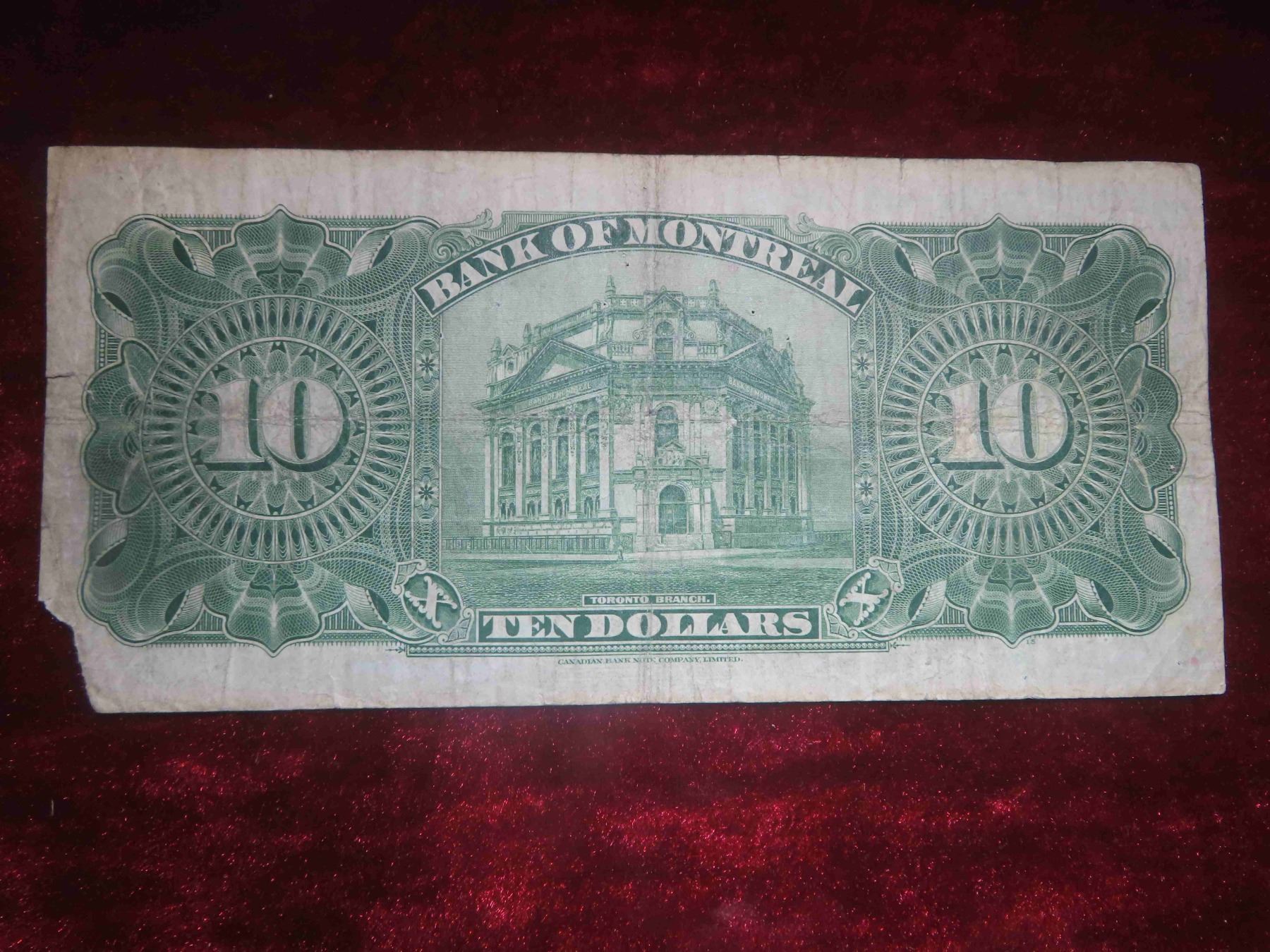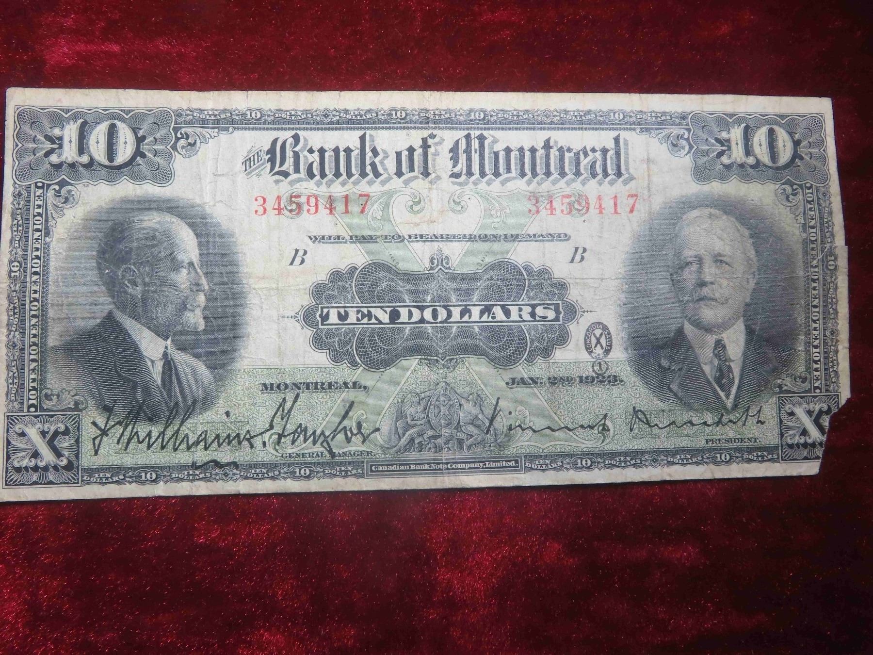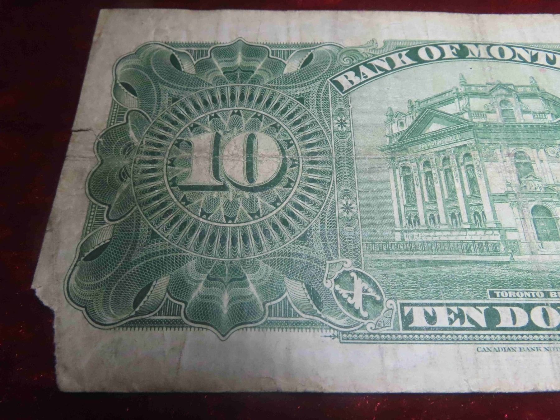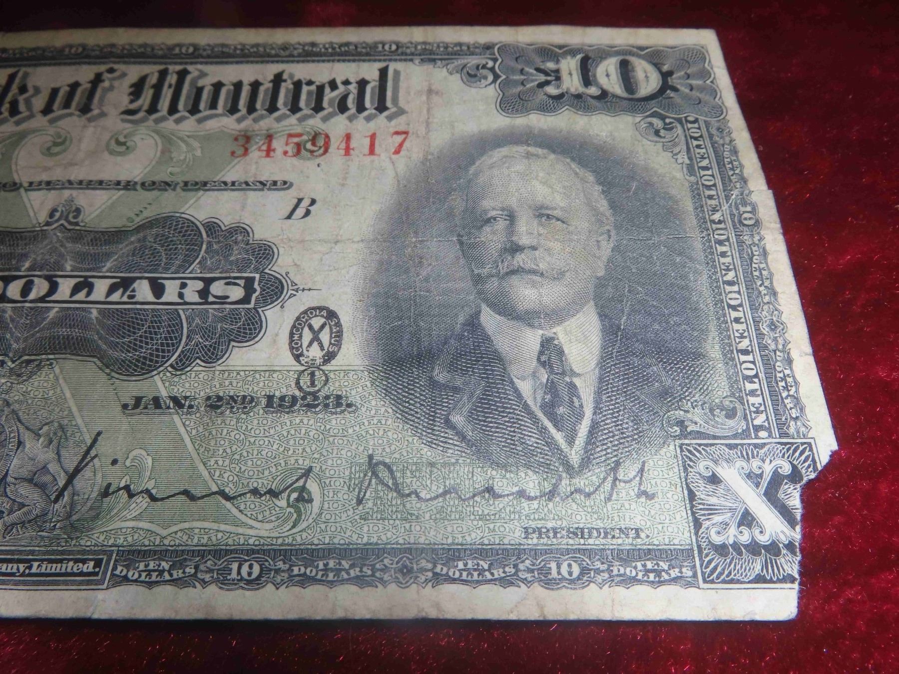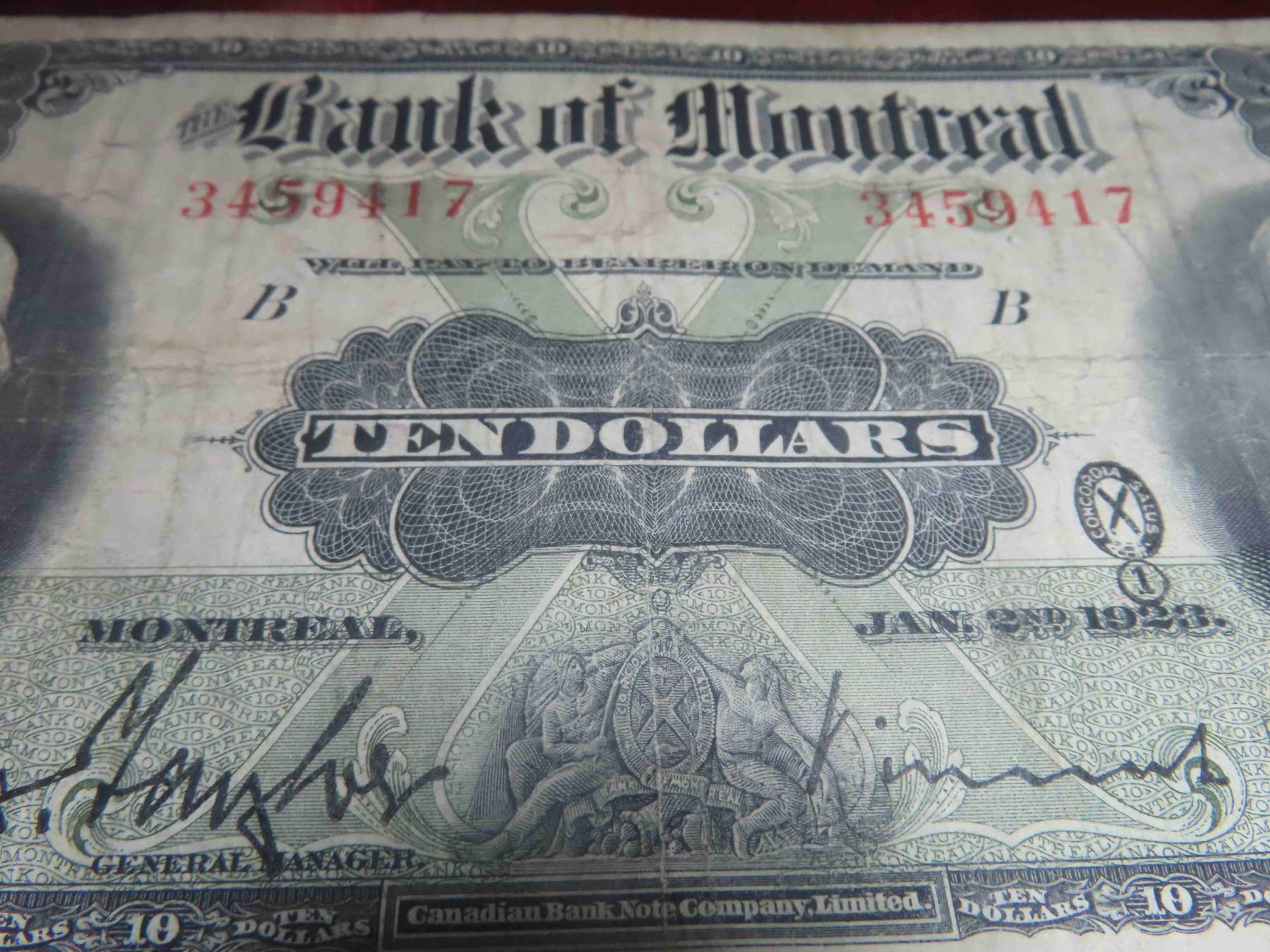 1923 Bank of Montreal 10 Dollar Bill - Very Rare