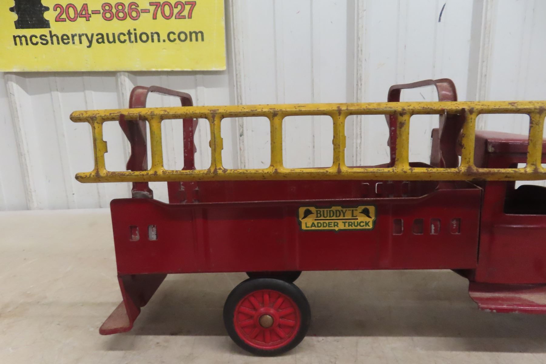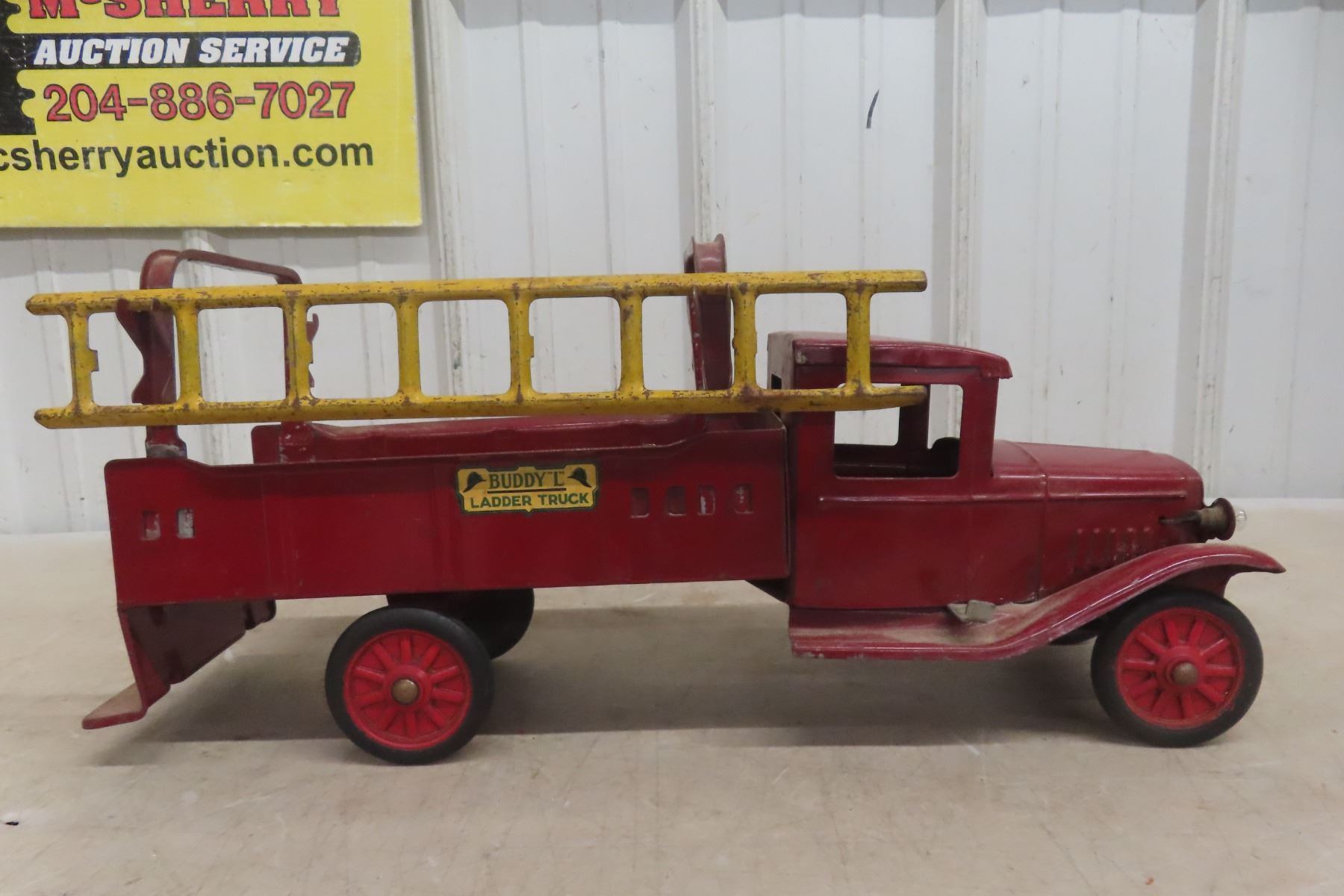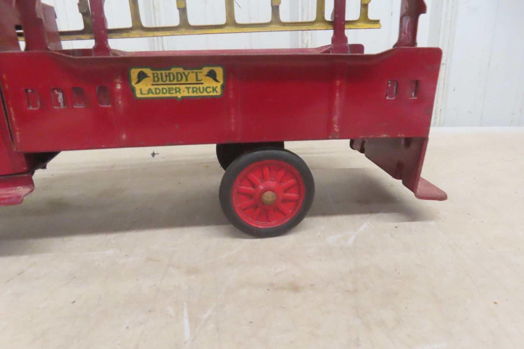 1930s Buddy L Ladder Truck Pressed Metal, Were Made from 1920s-1940s. Comes with 1 Ladder, 21'' Long