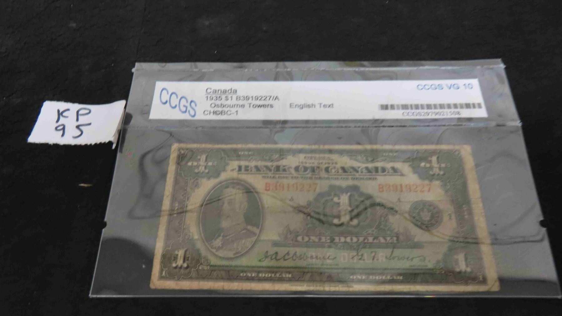 1935 Bank of Canada $1 Bill - English - Rare Graded VG 10