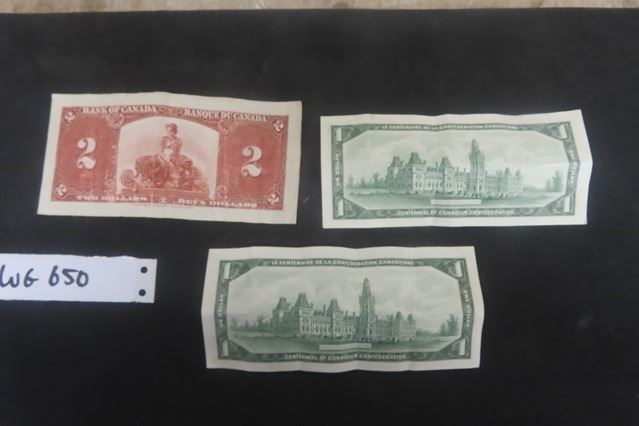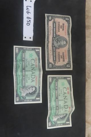 1937 $2.00 Canadian Paper Bill, (2) 1967 Canadian $1.00 Bills