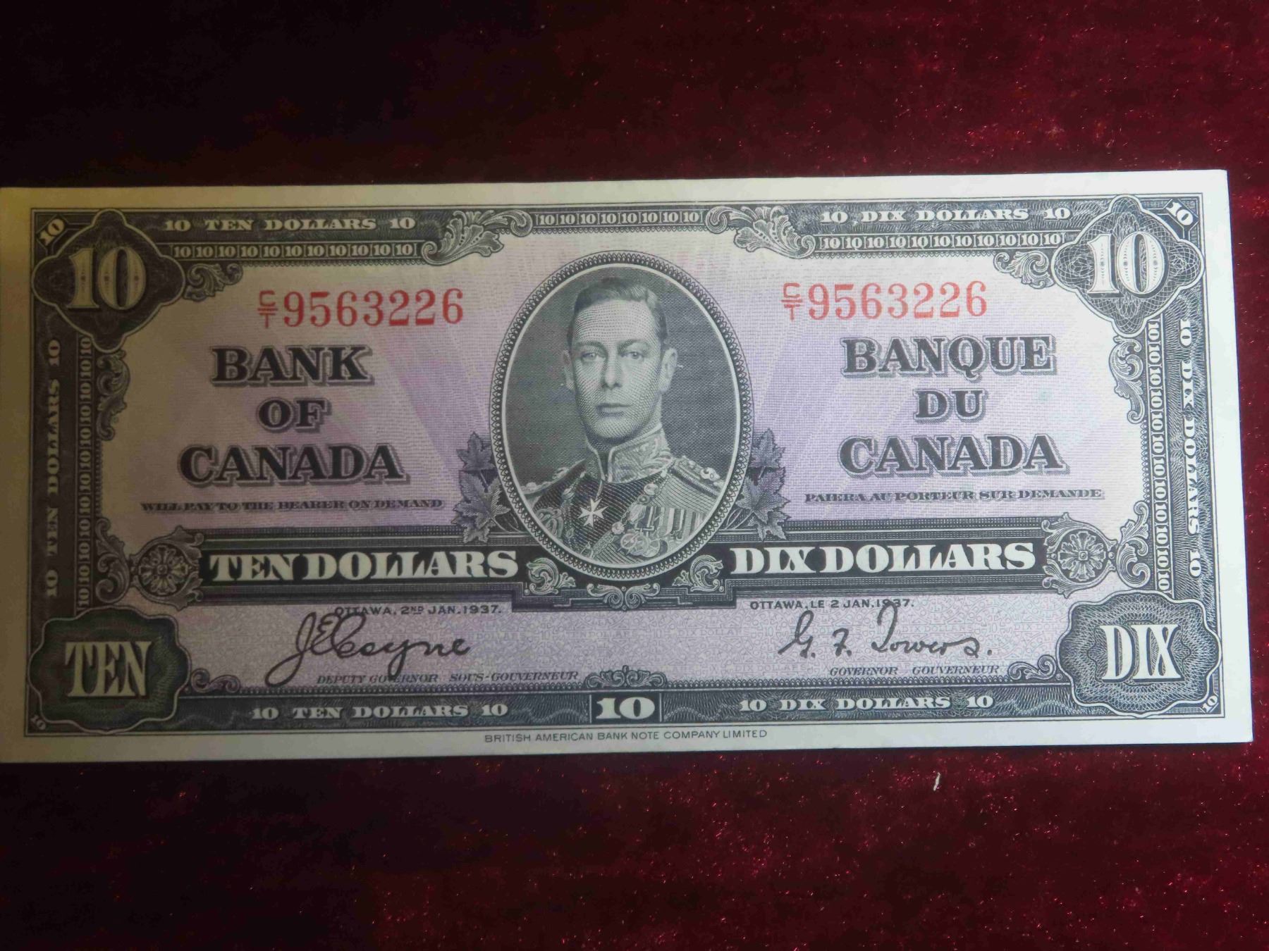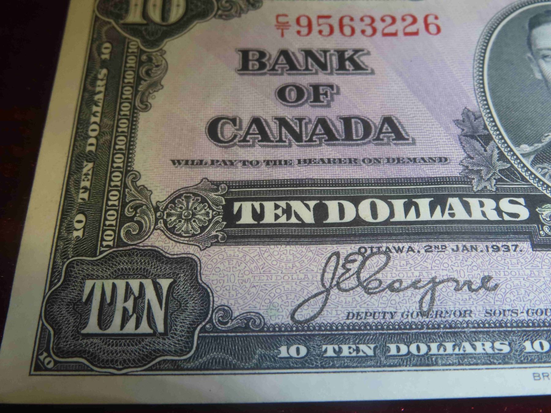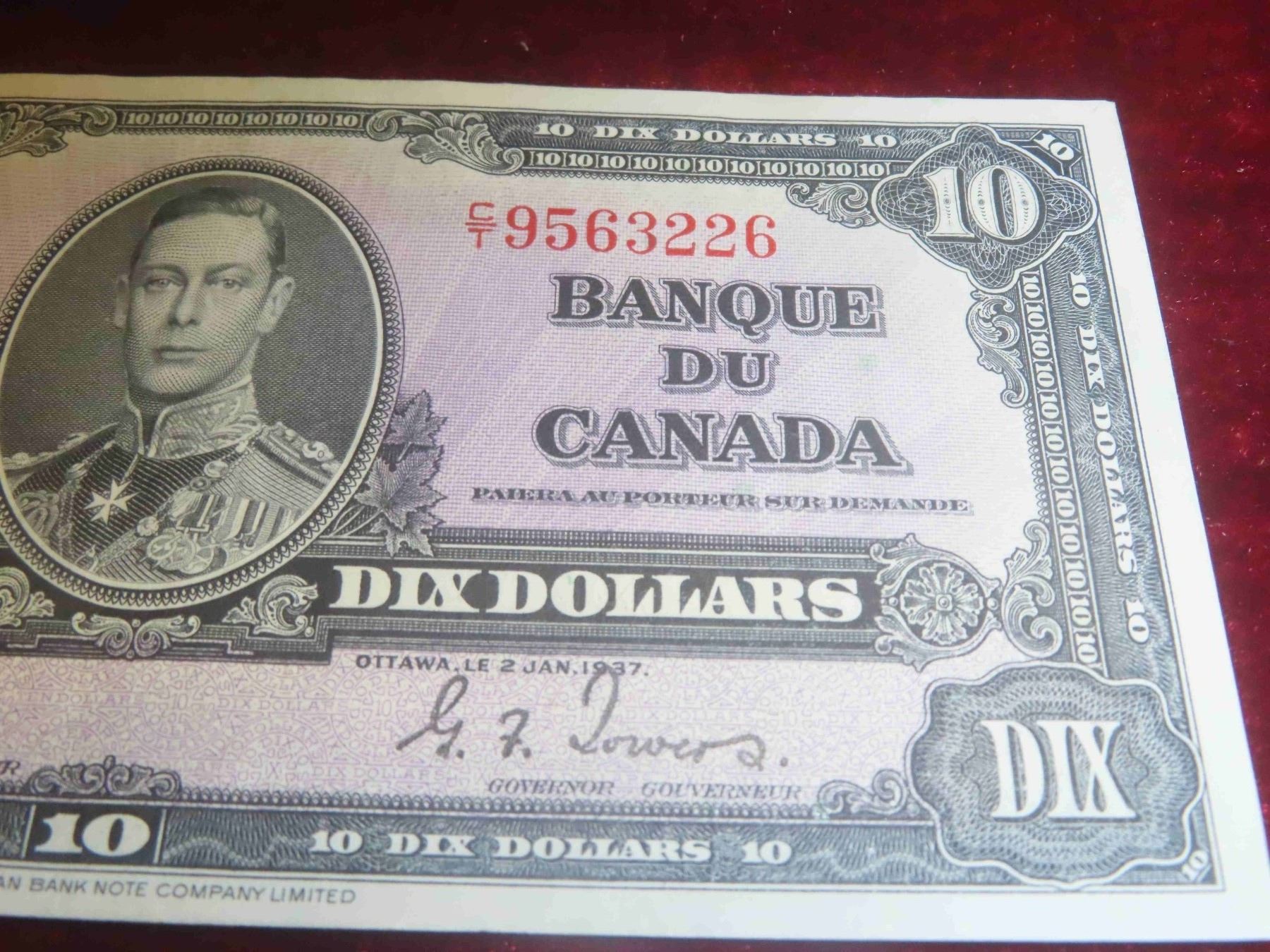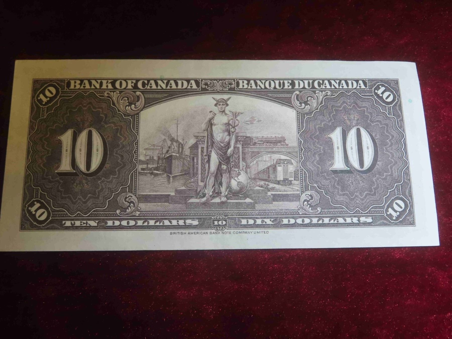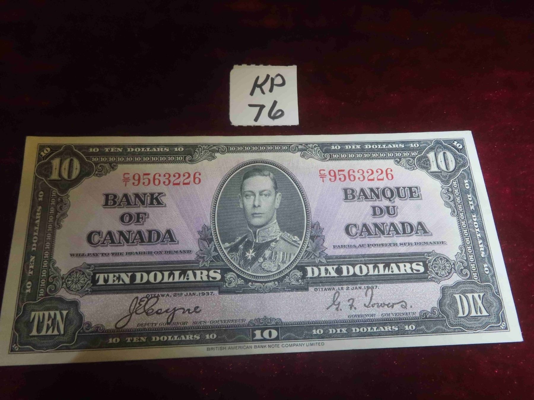 1937 Canada $10 Bill - Almost Uncirculated (AU)  - Very Nice