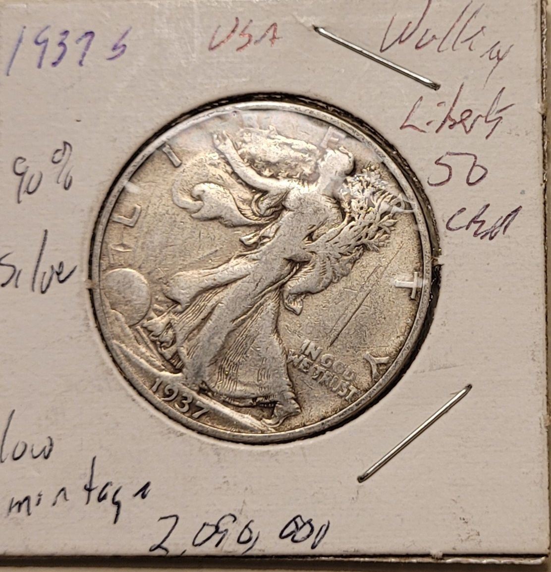 1937S Walking Liberty 50 cent 90% Silver low mintage 2,098,000