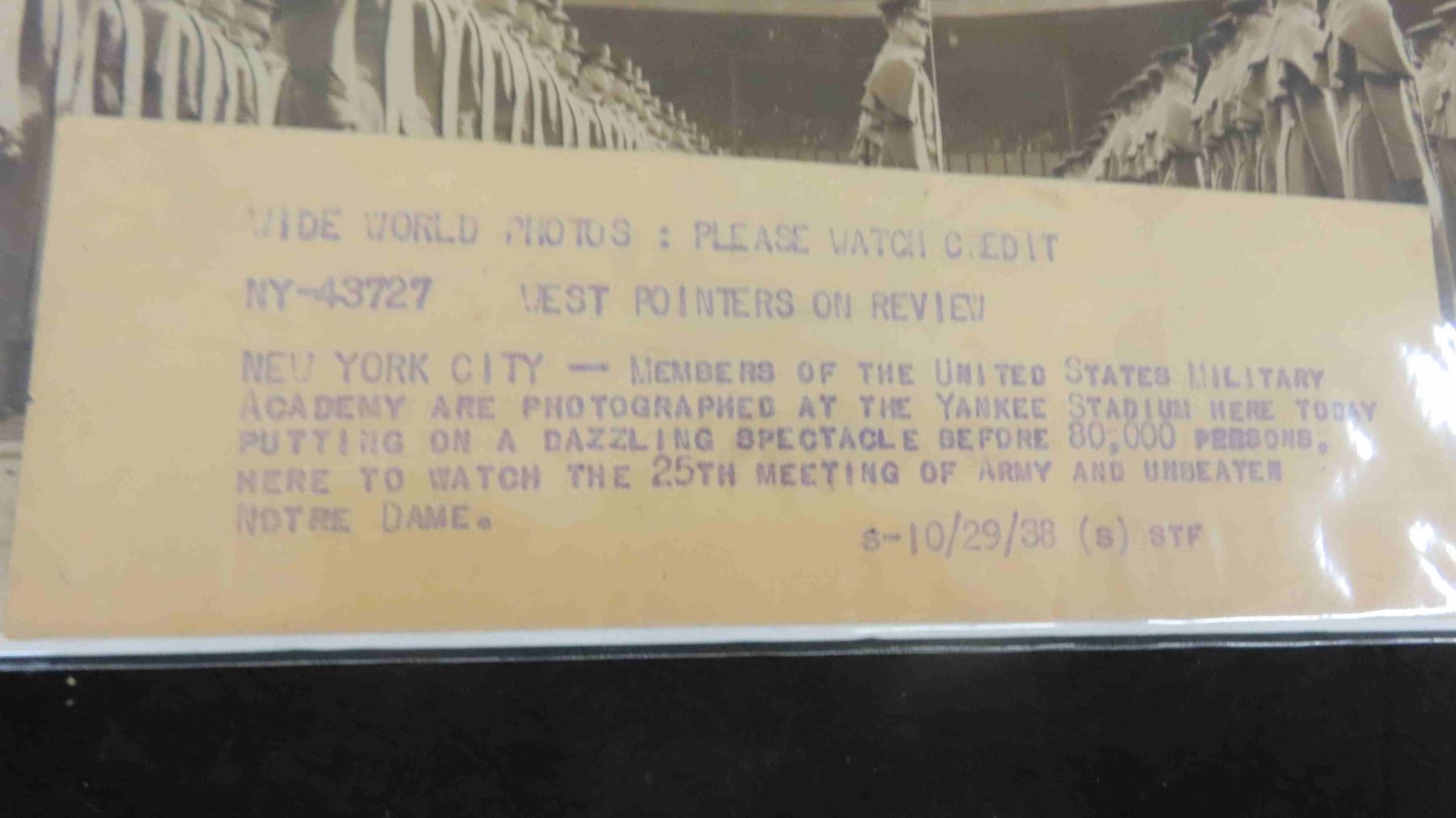 1938 Wire Photo 'Members of the United States Military Academy' Photographed at Yankee Stadium 'Here at the 25th Meeting of Army and Unbeaten Notre Dame' 10/29/38