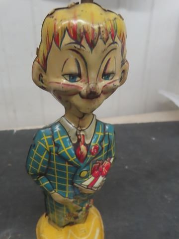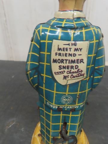 1939 Marx Mortimer Snerd Windup Tin - Missing Hat 8" Tall