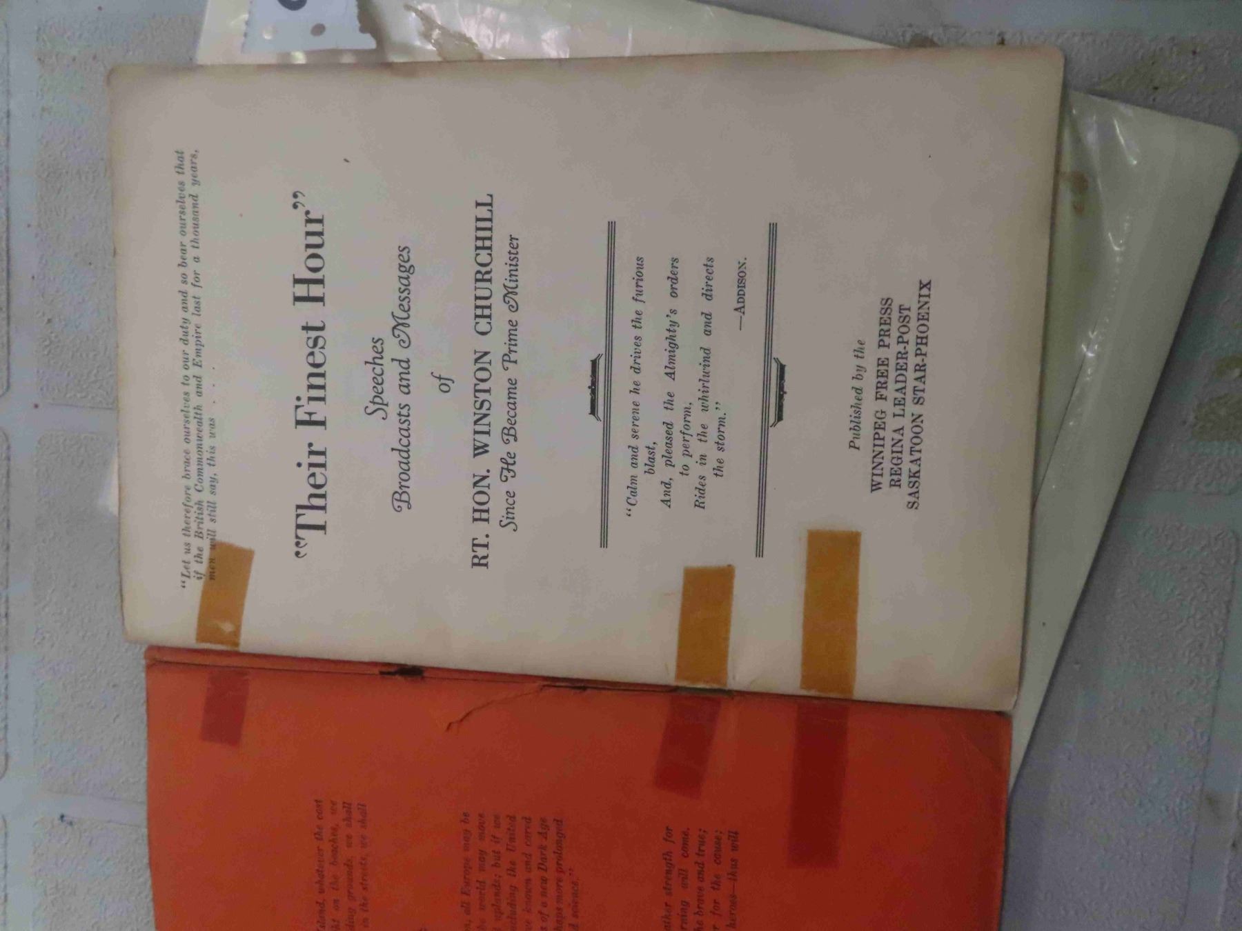 1940 'Their Finest Hour' Winston Churchhill Book Published by Winnipeg Free