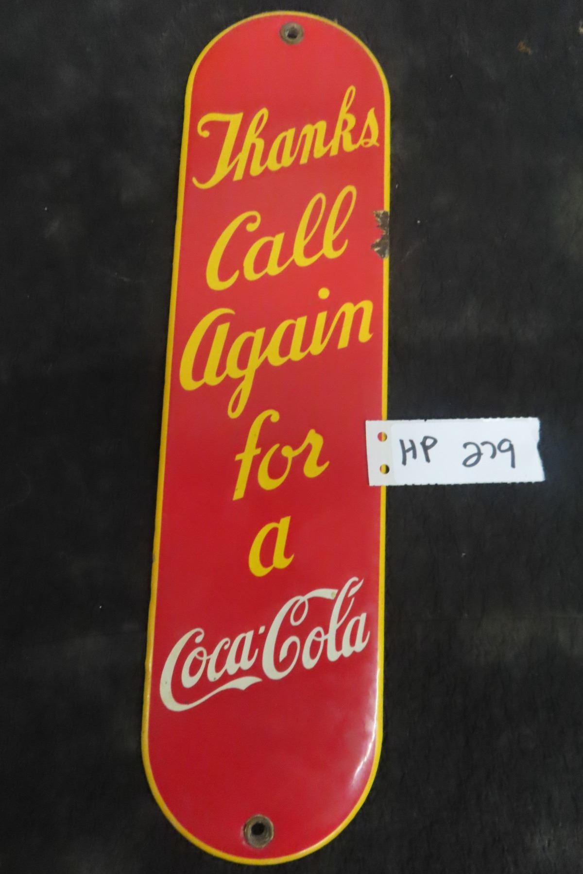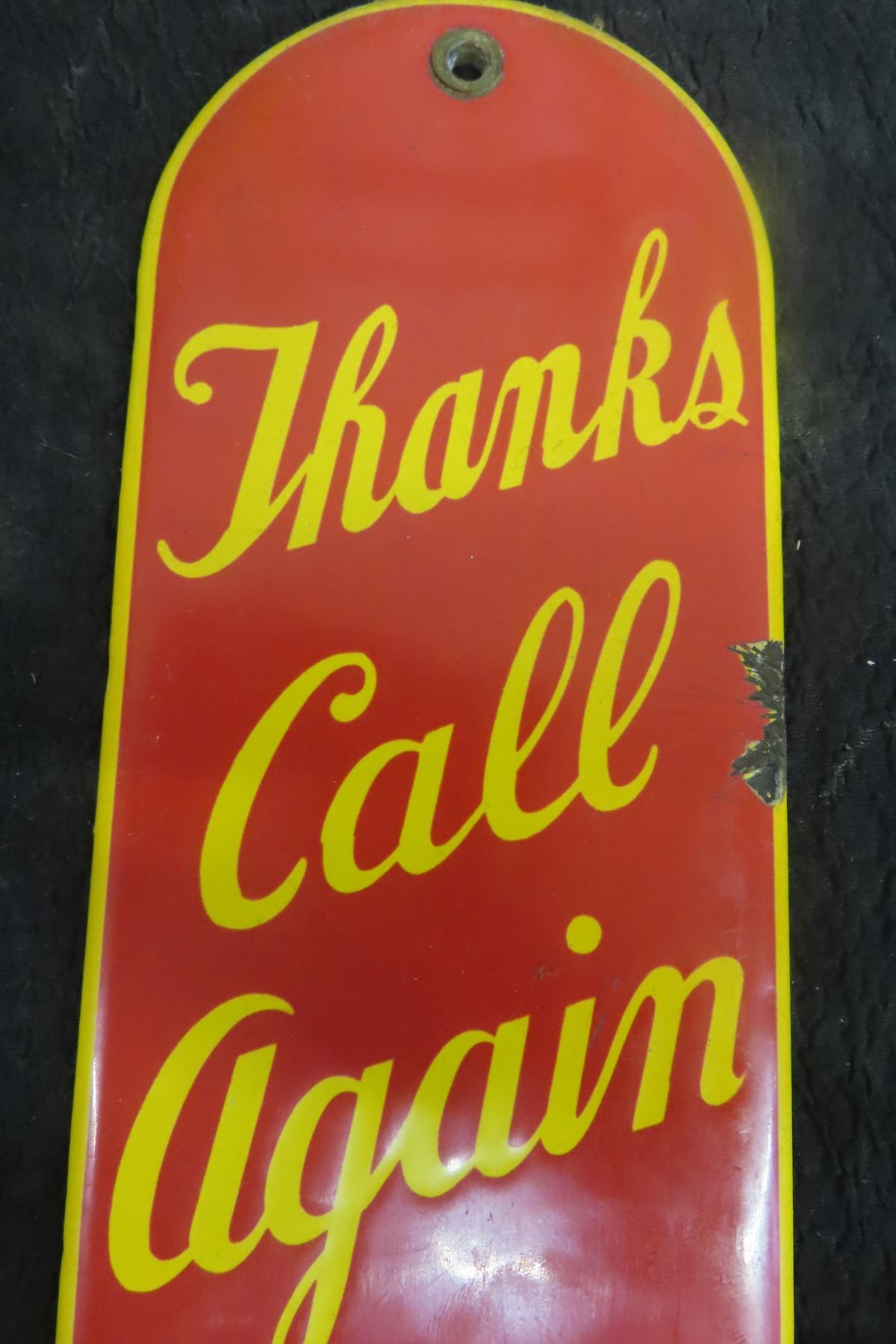1940s Coca Cola Thanks Call Again Porcelain Palm Press