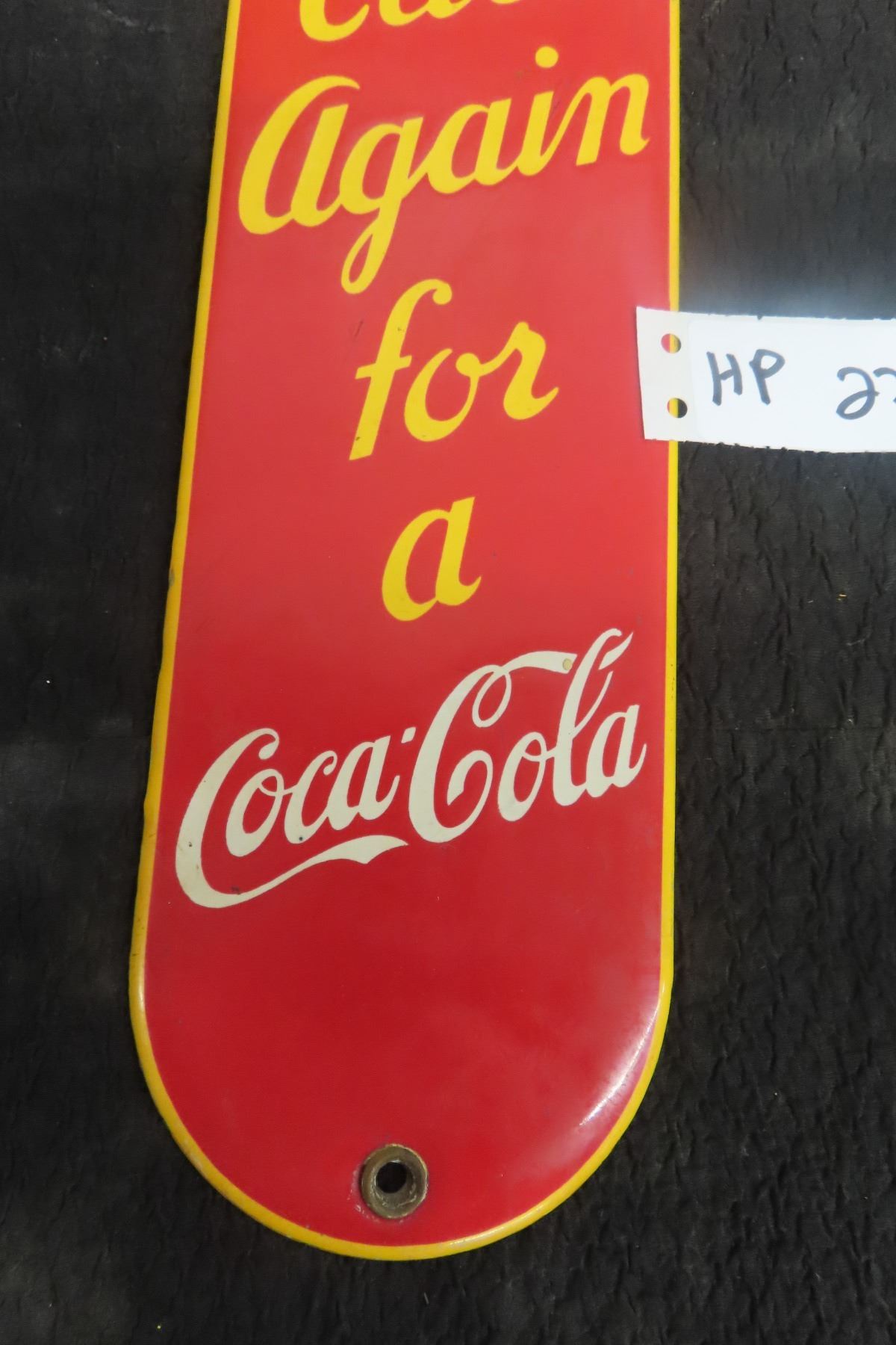 1940s Coca Cola Thanks Call Again Porcelain Palm Press 4 1/2"x11"