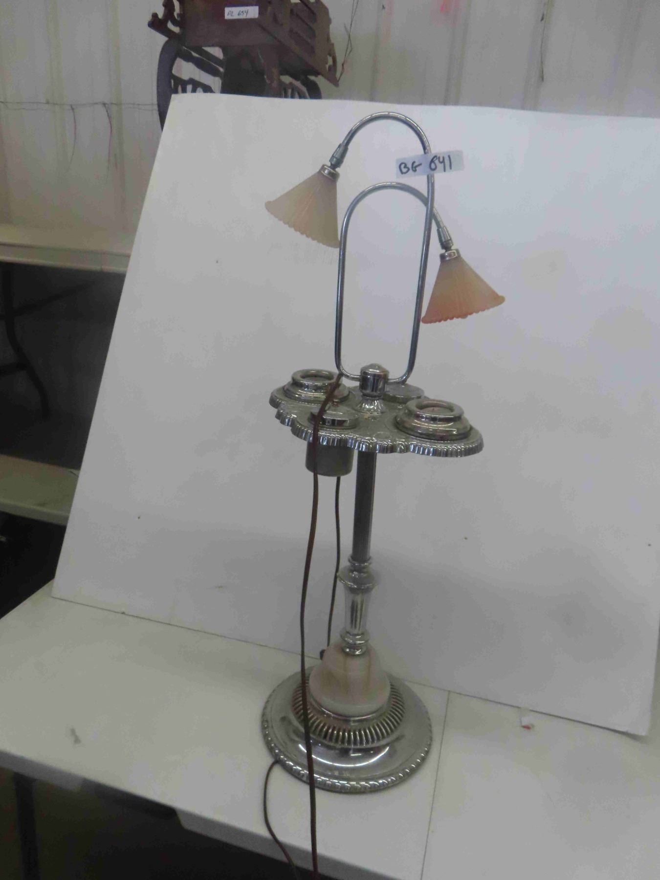 1940s Metal Craft Chrome Floor Ashtray Stand with Tulip Shades
