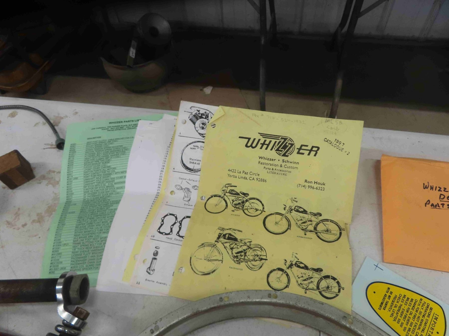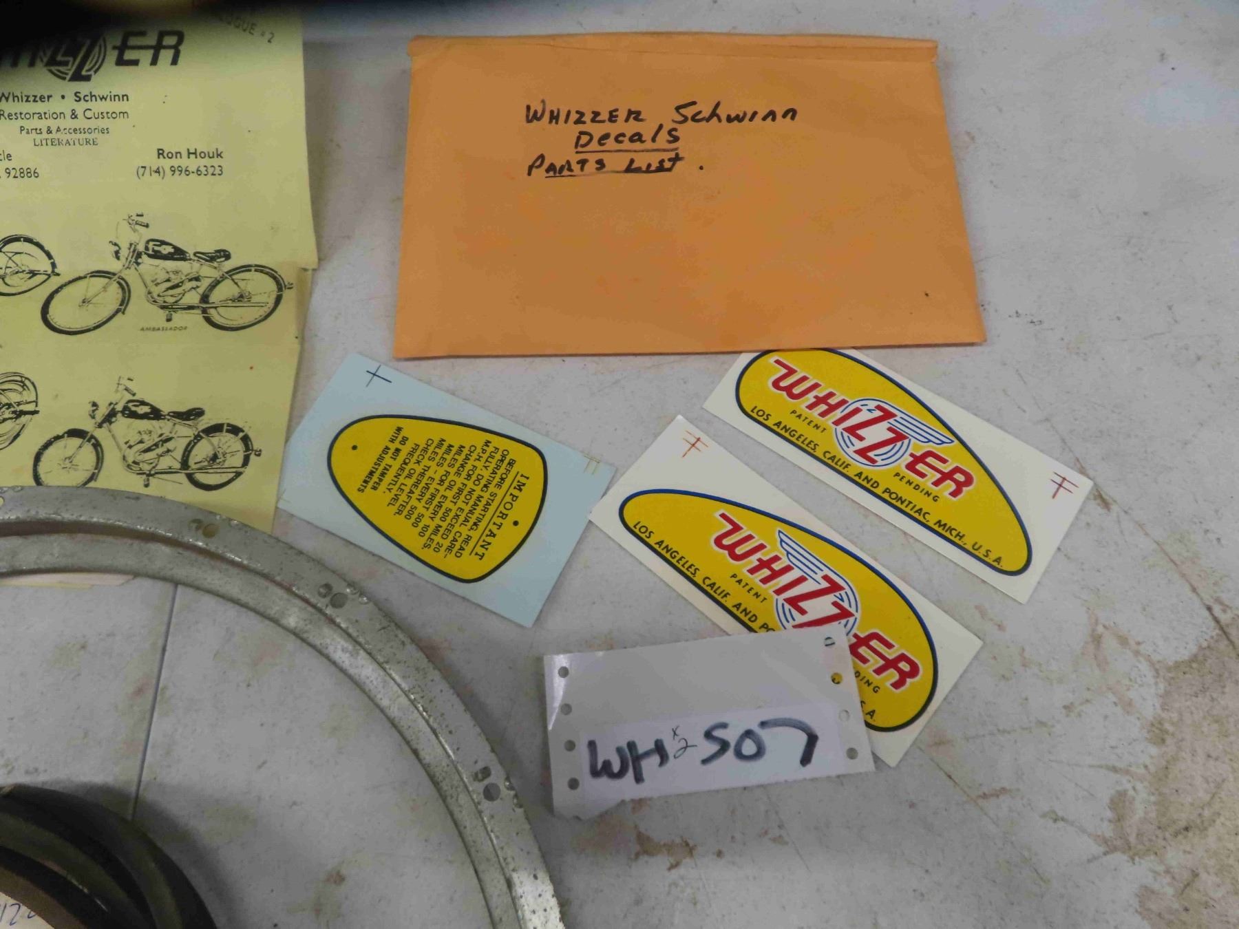 1940s Schwins Pedal Bike with Whizzer Motor S# H-69031 with Extra Parts : Decals , Forks with Suspension, Speedometer with Cable, License Bracket with Light, Plus