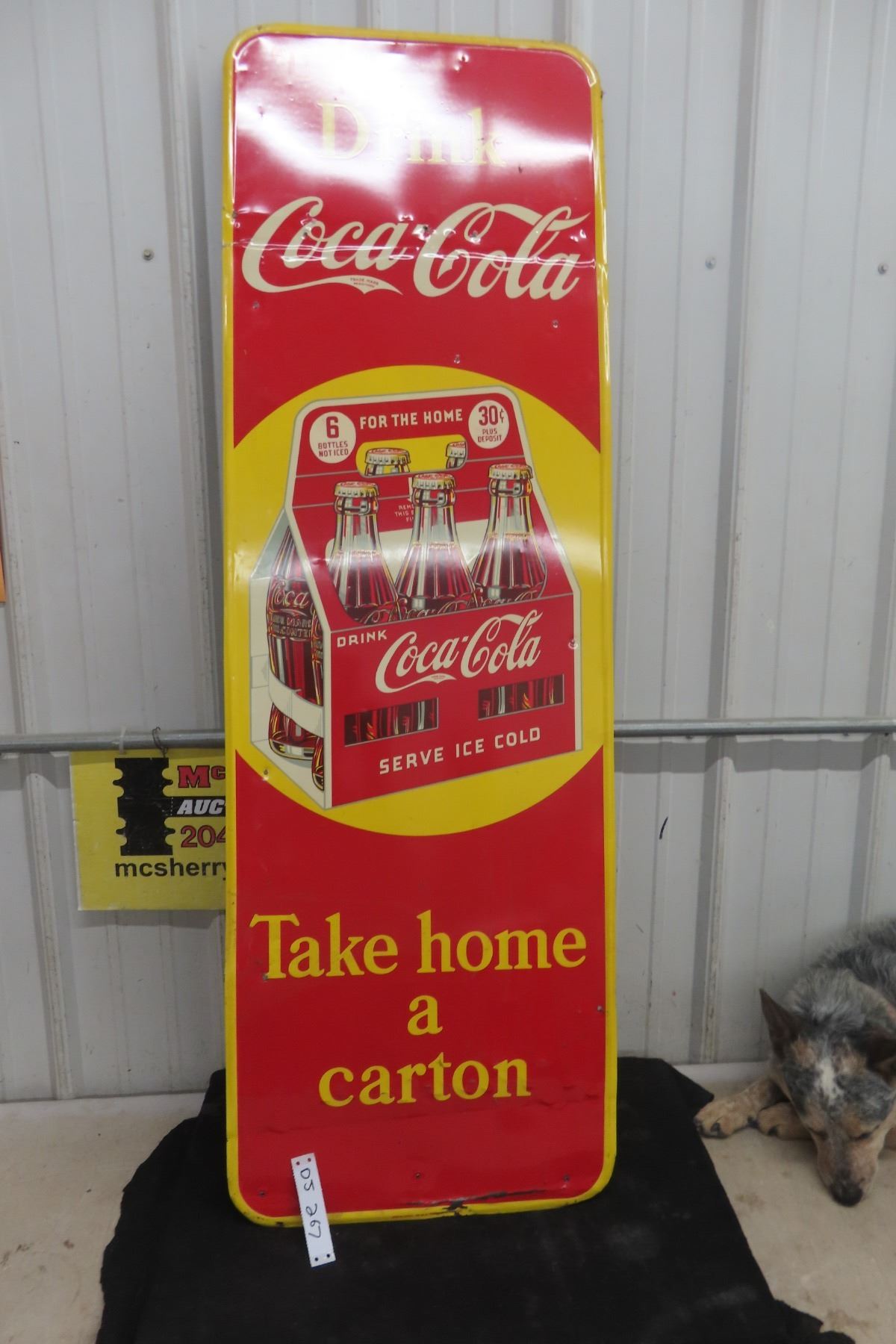 1941 Drink Coca Cola Take Home a Carton Metal 6-Pack Sign,