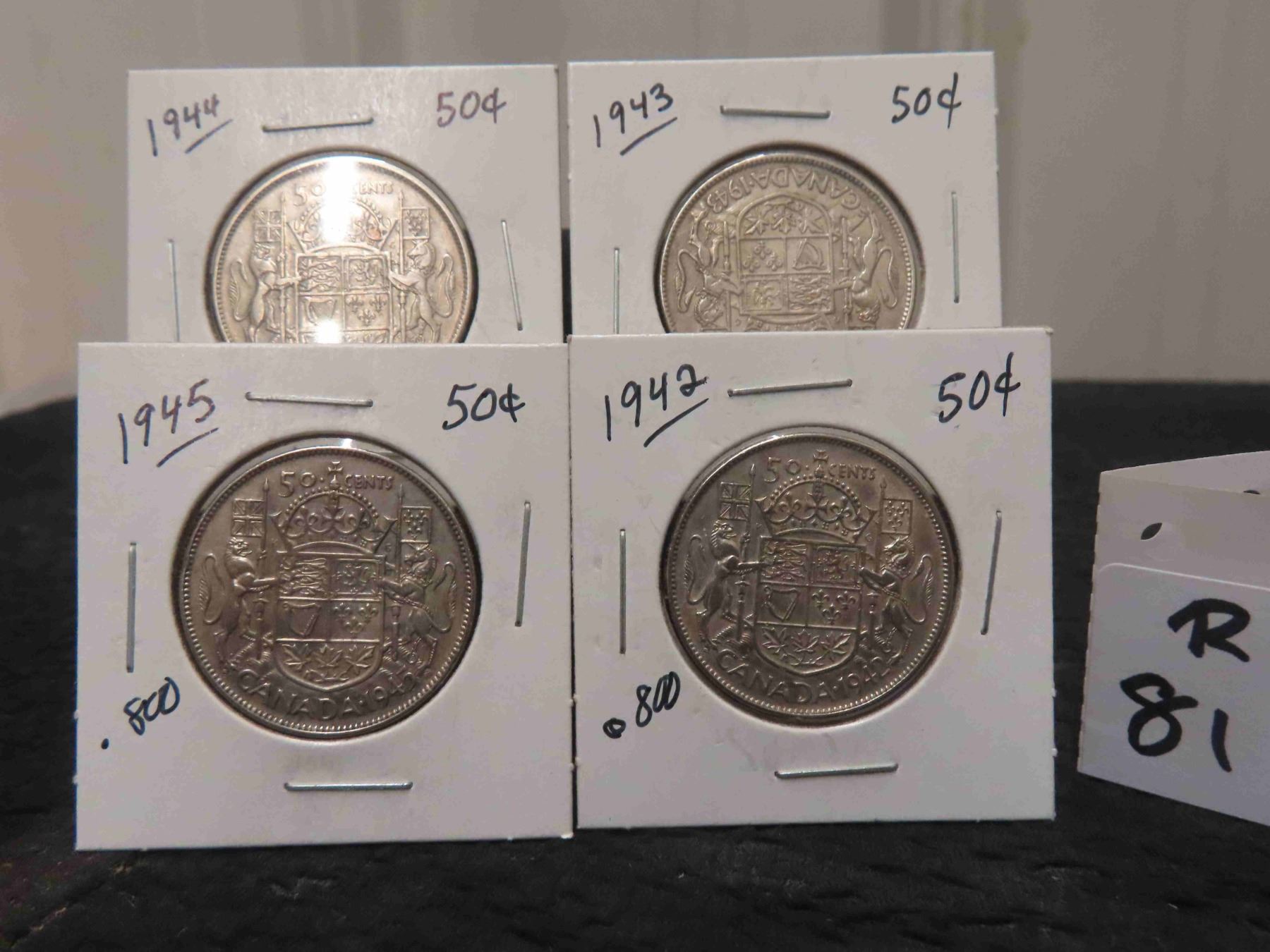 1942-1945 Canada Half Dollar 80% Silver George VI