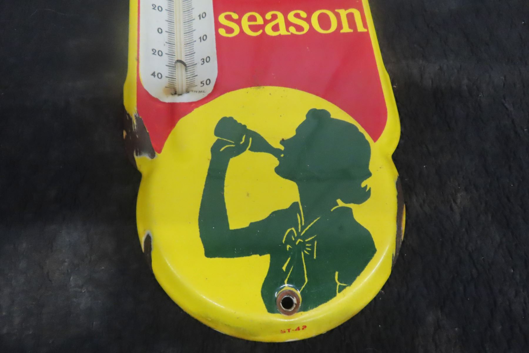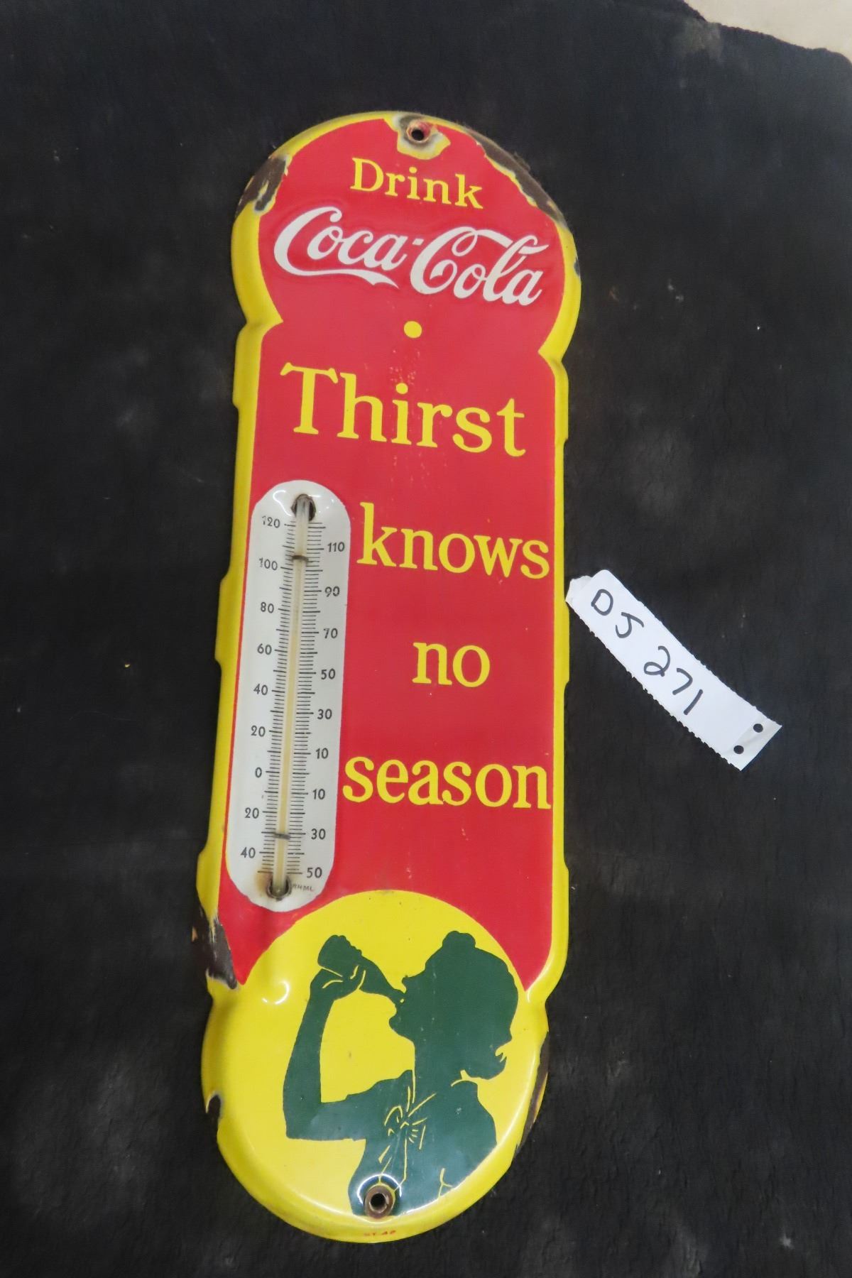 1942 Coca Cola 'Thirst Knows No Season' Silhouette Porcelain Thermometer with Bulb 18'' x 6''