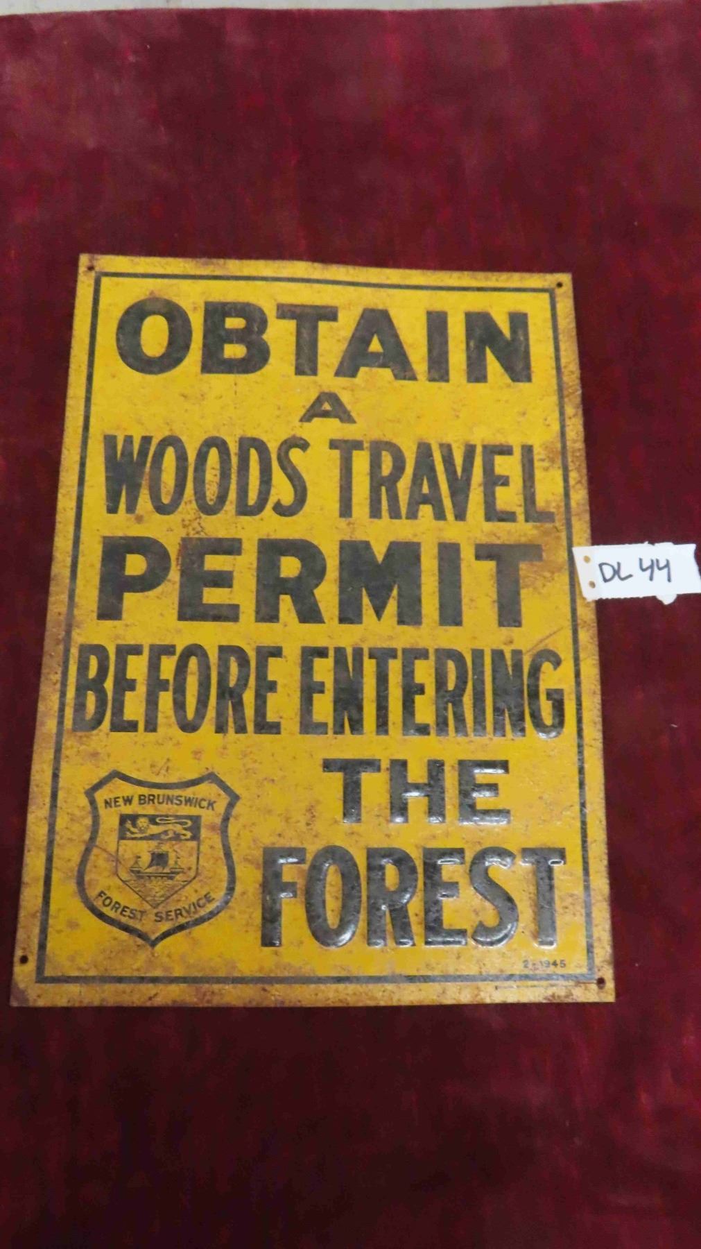 1945 Woods Travel Forest Permit Metal Embossed 10'' x 14''