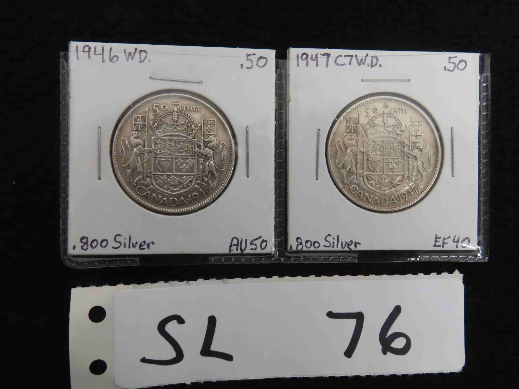 1946 W.D. & 1947 C7W.D. Canada Half Dollars .800 Silver AU50 & EF40