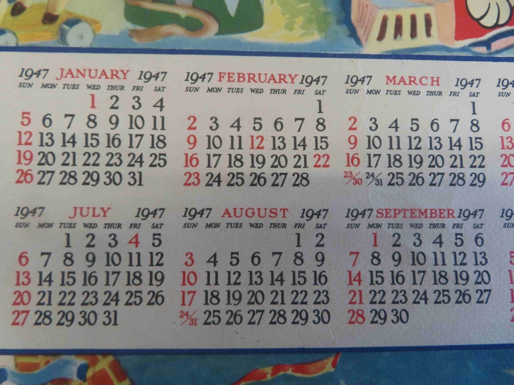 1947 Ringling Bros + Barnum & Barley Wall Calender