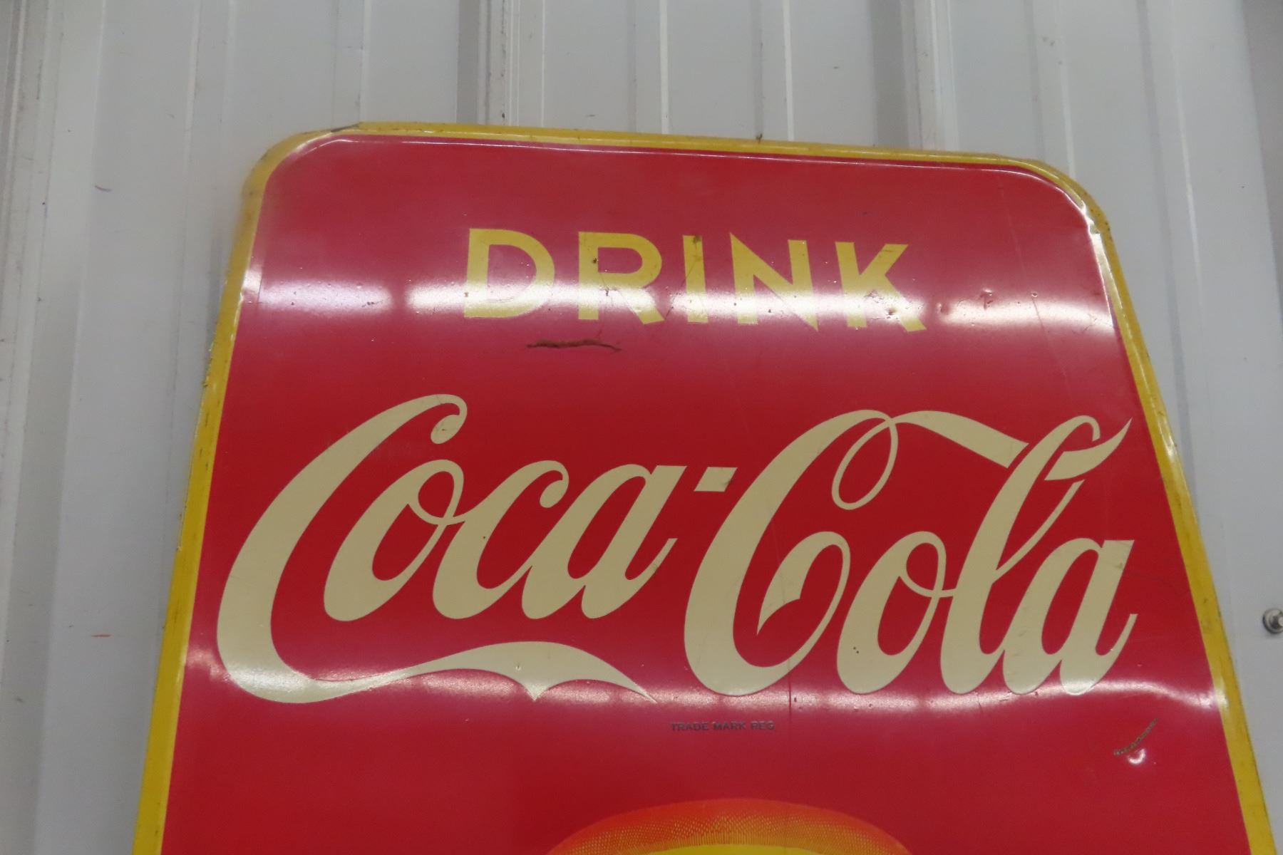1949 Drink Coca Cola Metal Bottle Sign 17'' x 52 1/2'' St.Thomas