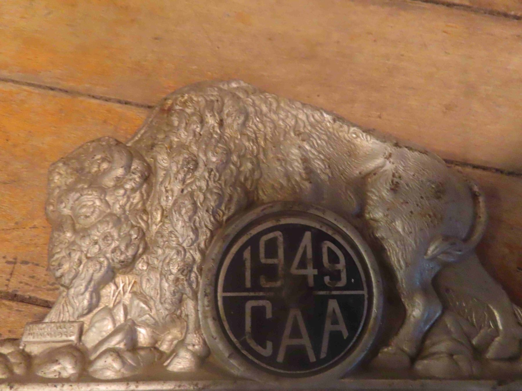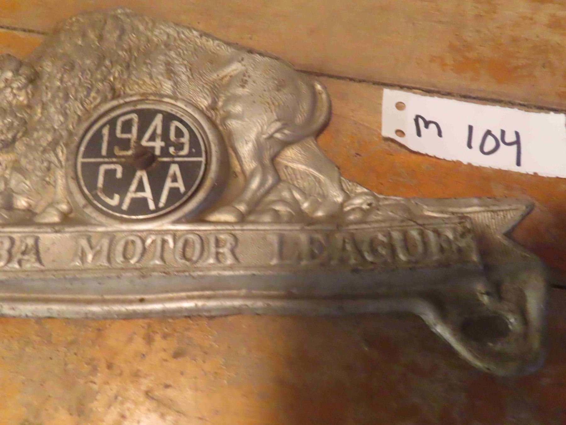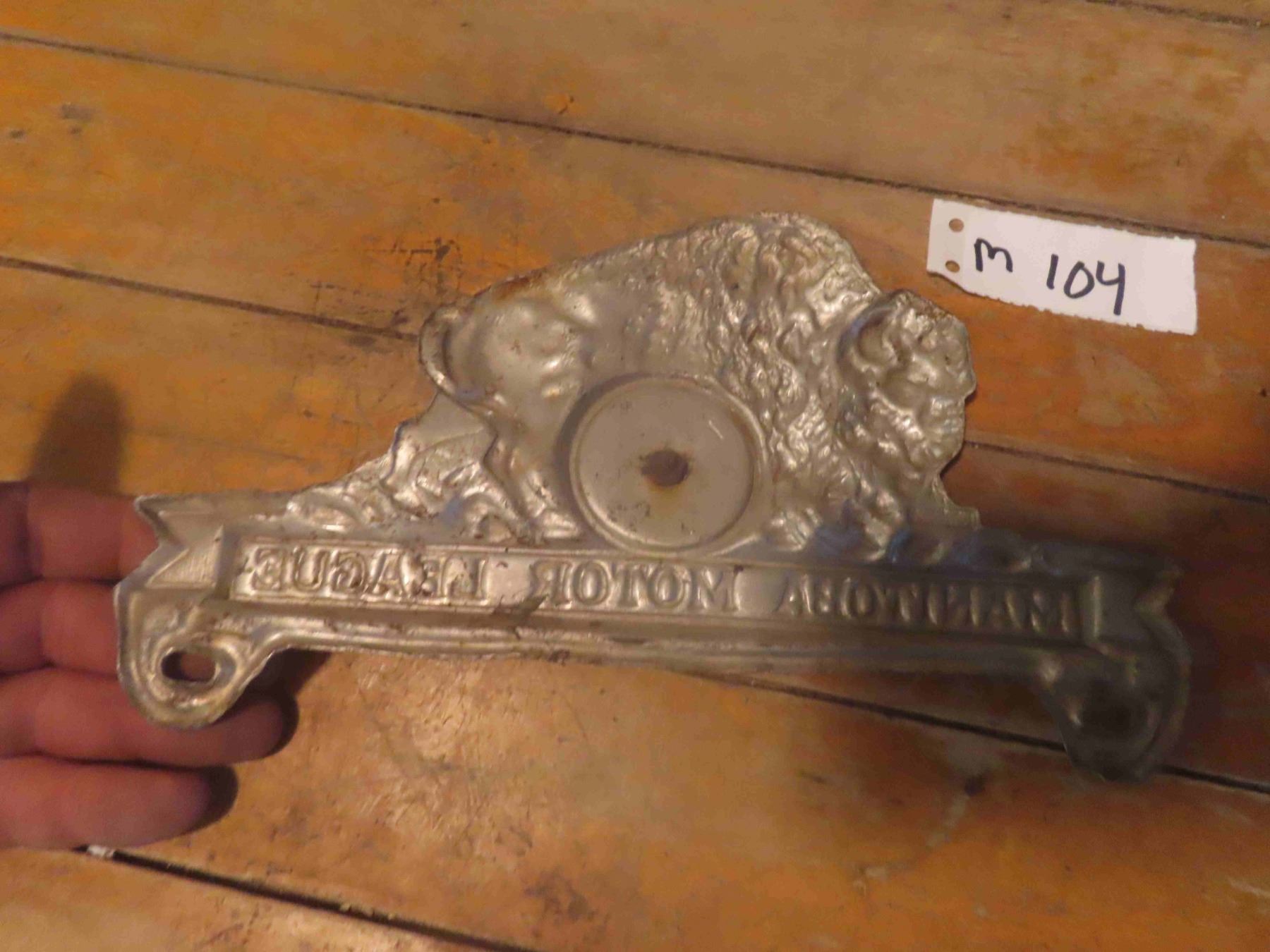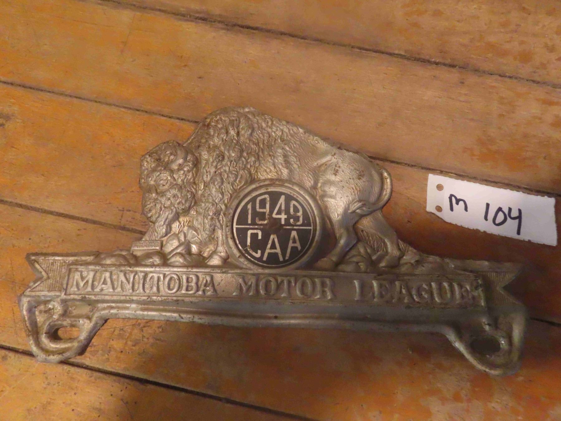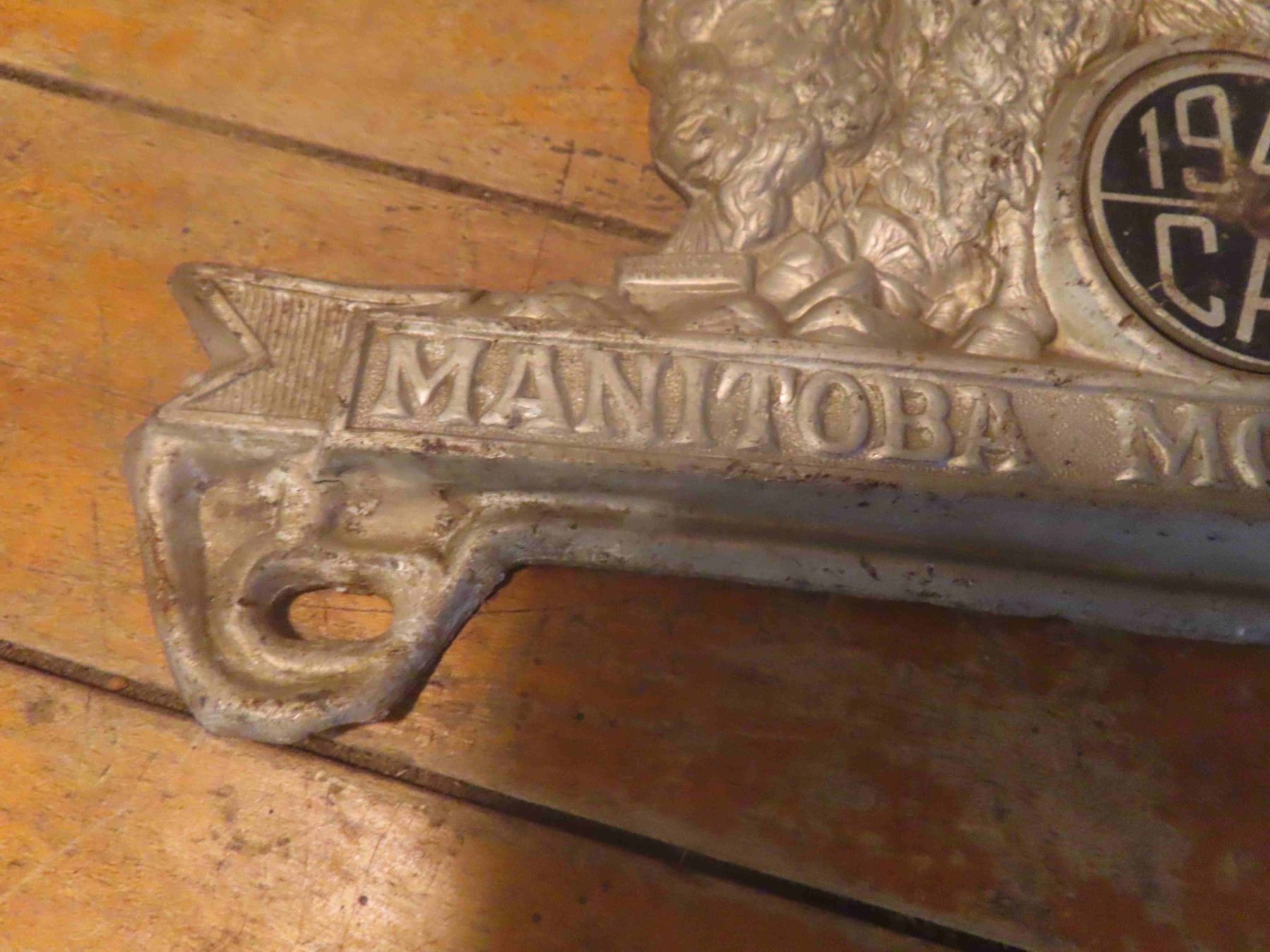 1949 Manitoba Motor League Metal License Plate Topper with Buffalo