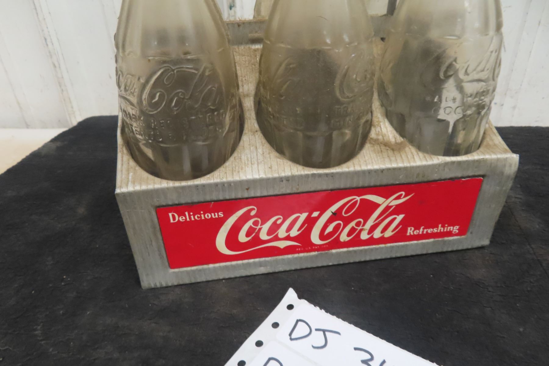 1950s Coca Cola 6-Pack Aluminum Carrier Complete with 6 Coke Bottles