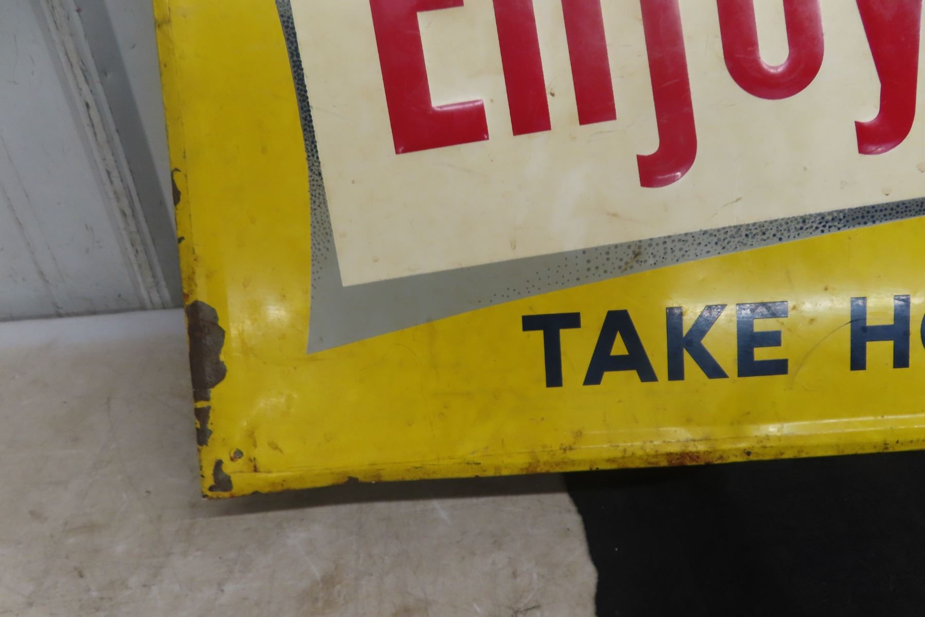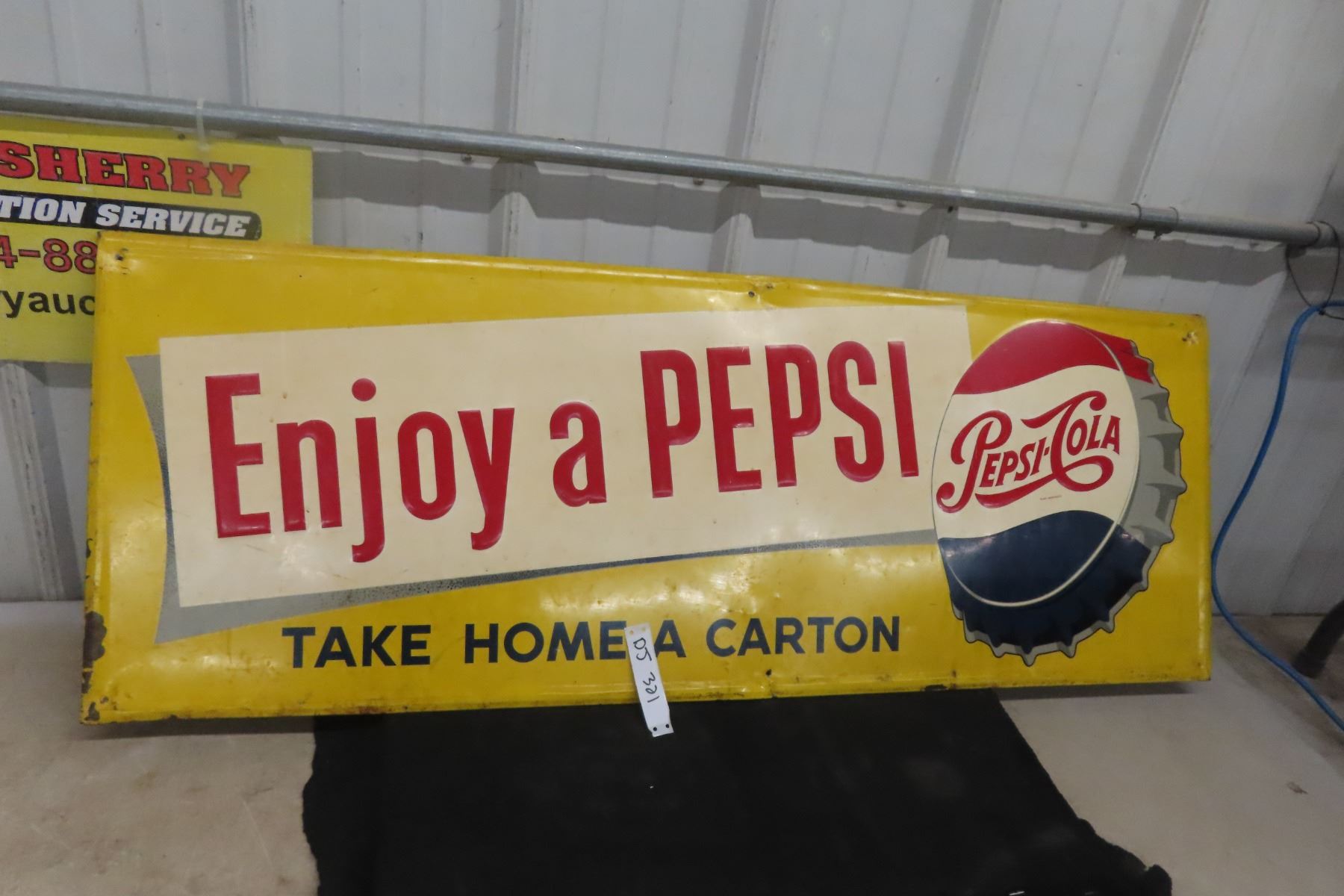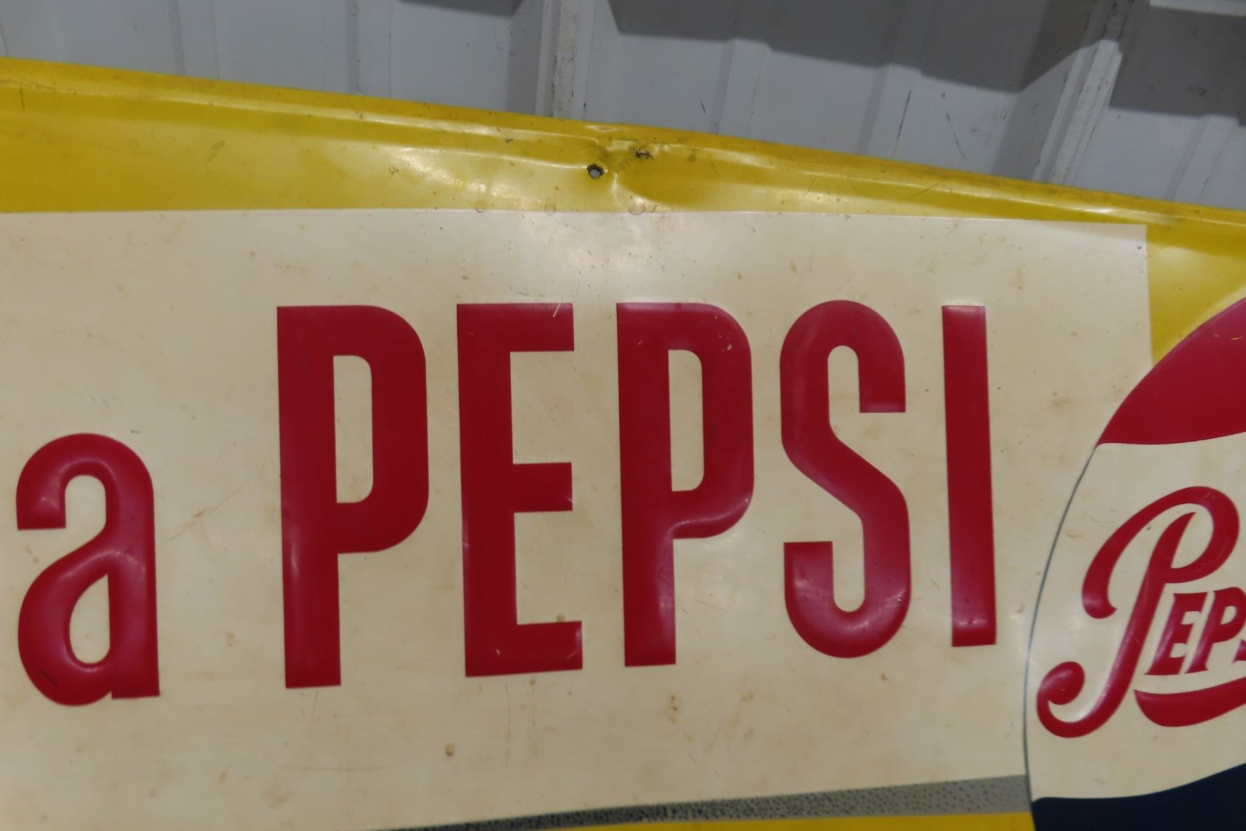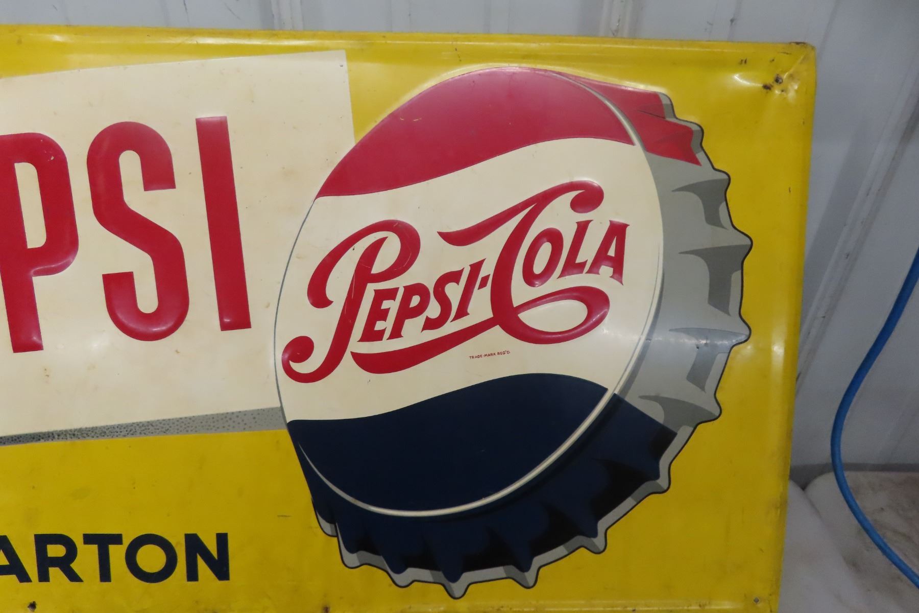 1950s Enjoy a Pepsi Cola Take Home a Carton Metal Embossed Sign with Bottle Cap 17'' x 47''
