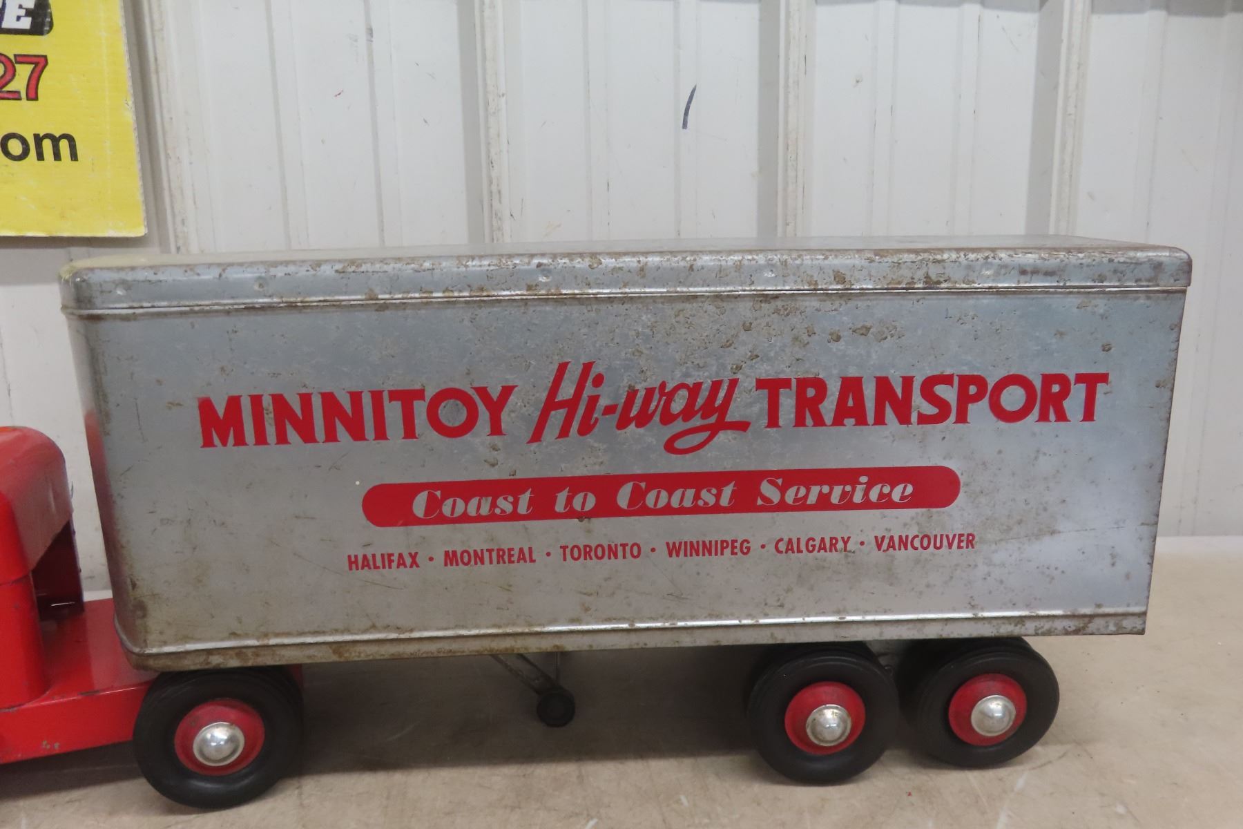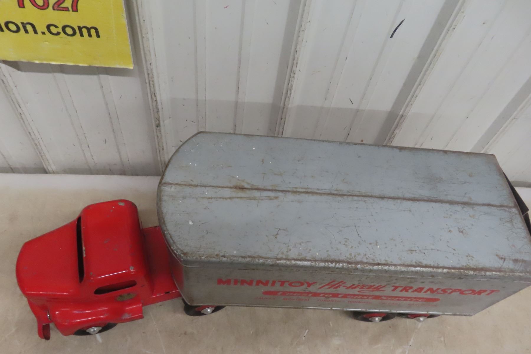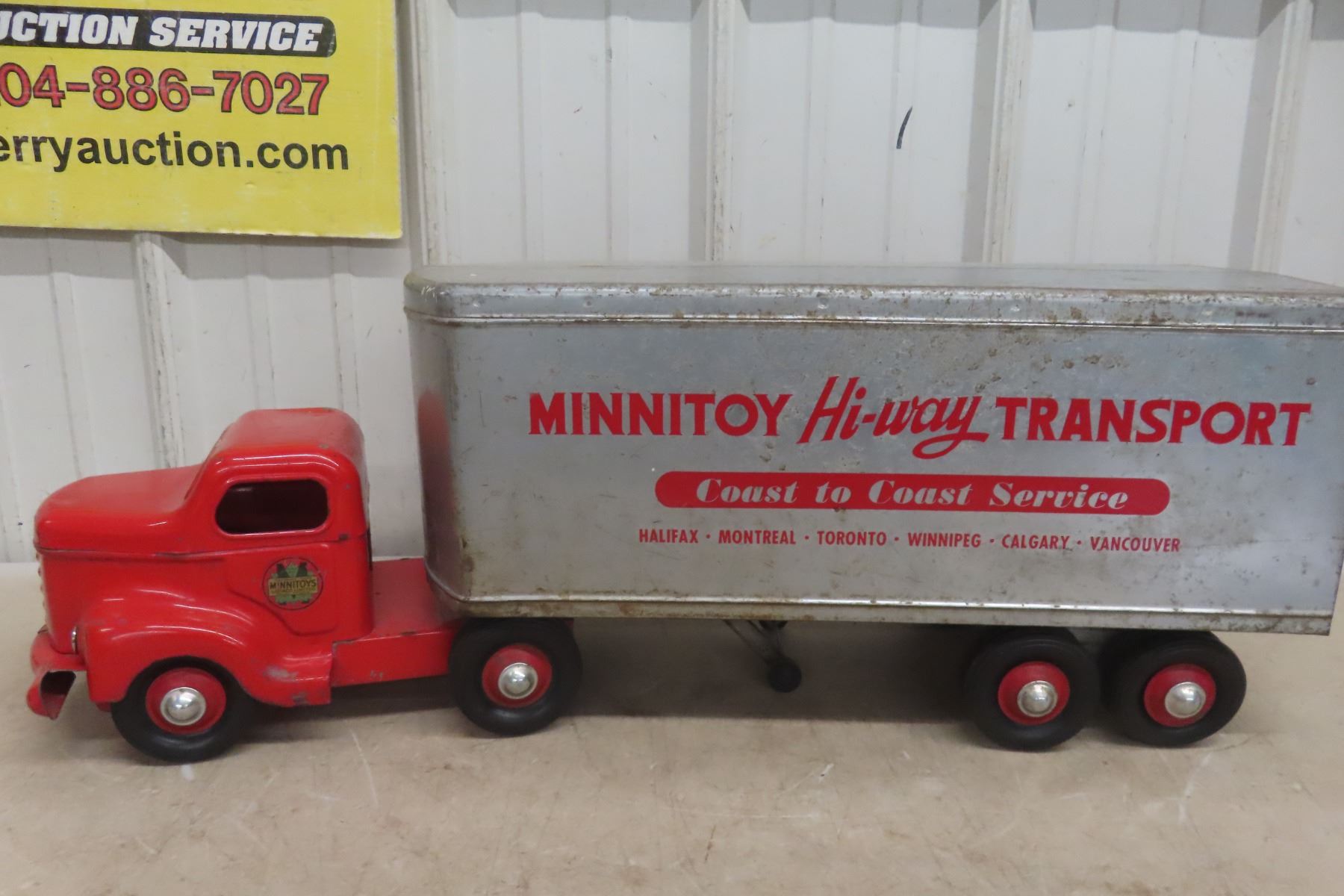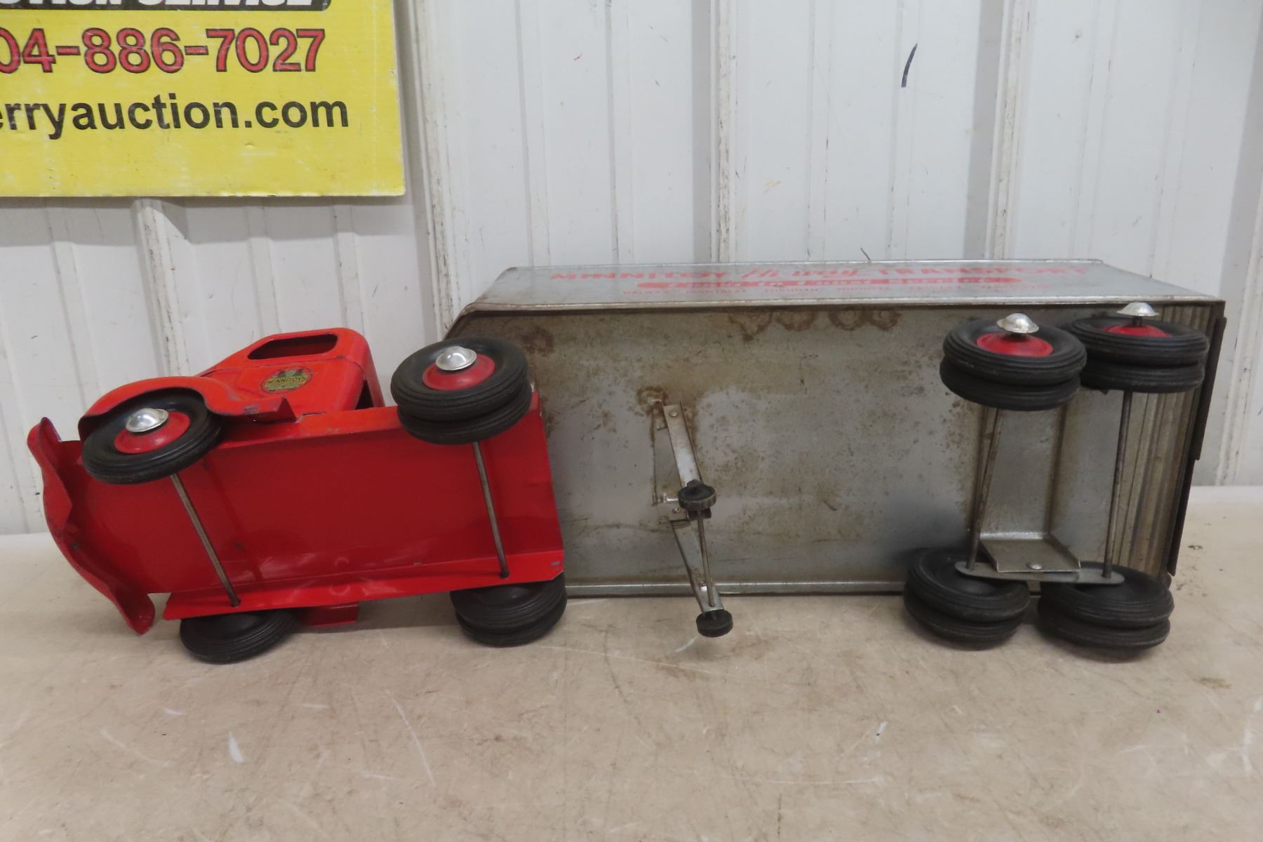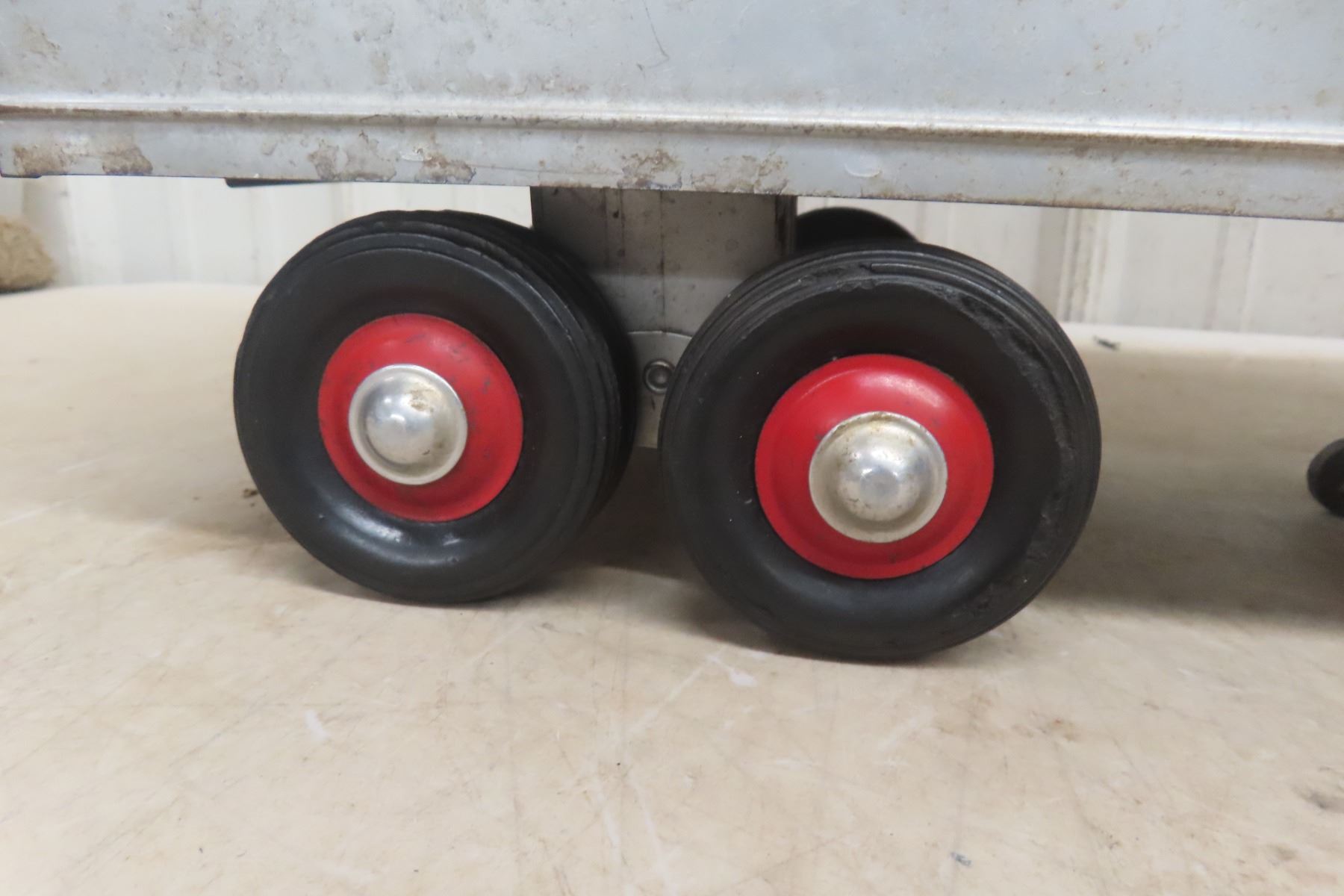 1950s Minnitoy Hi-Way Transport Pressed Metal Truck and Trailer 28'' Long