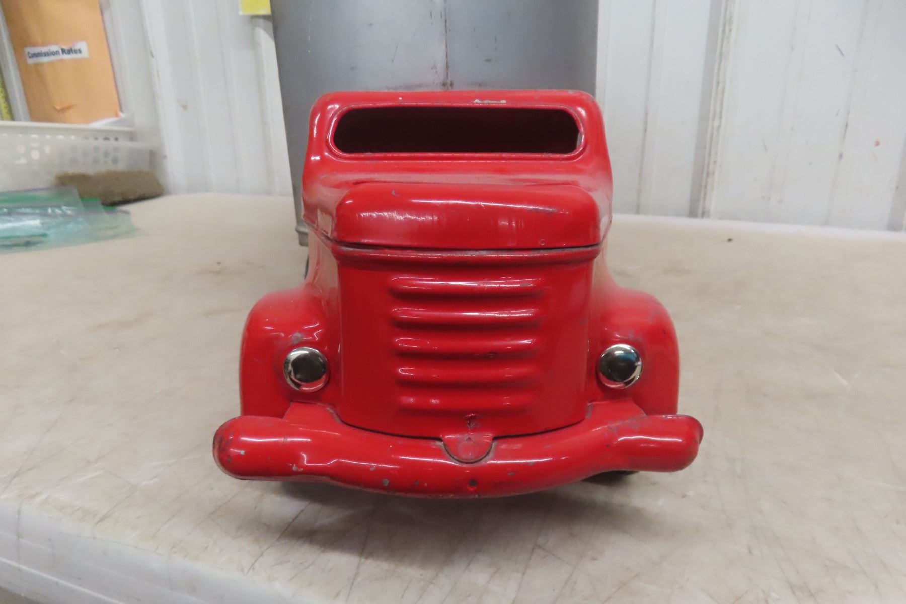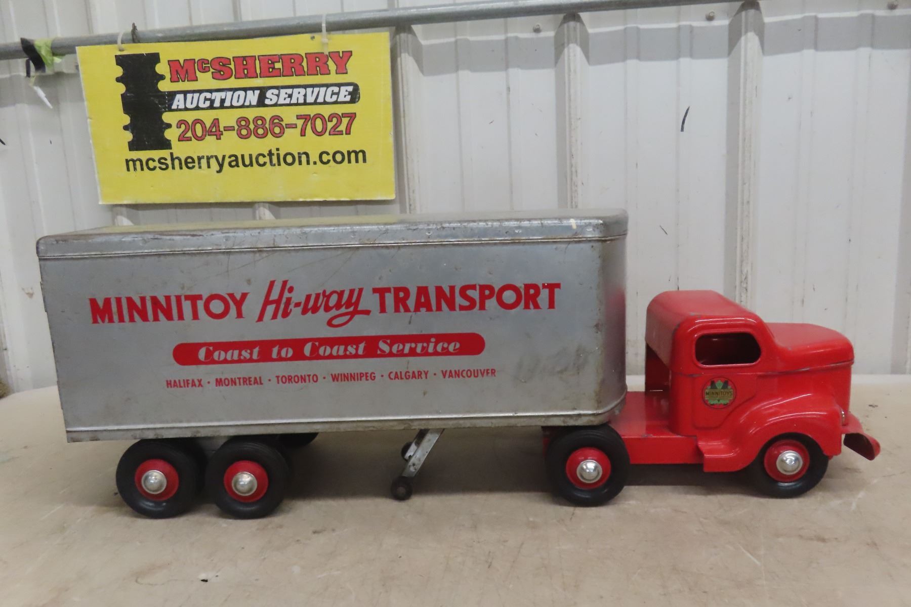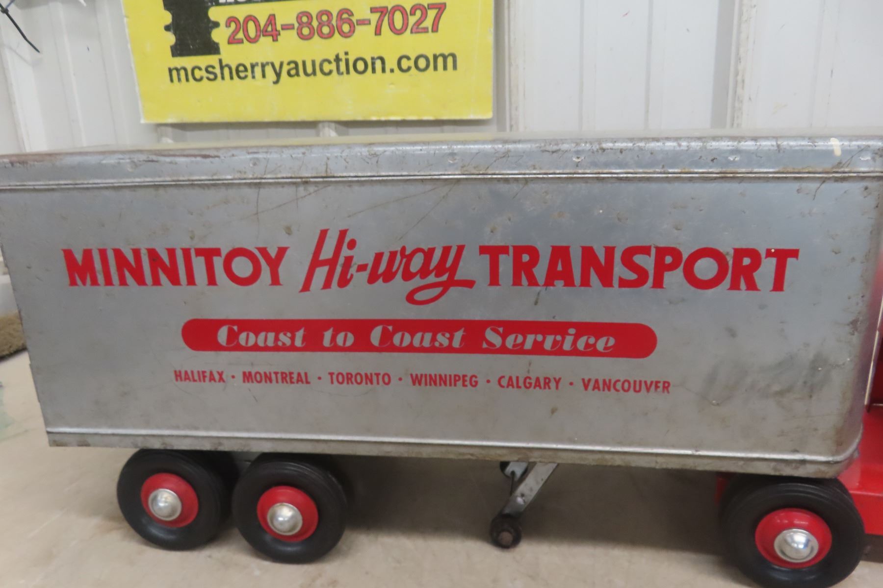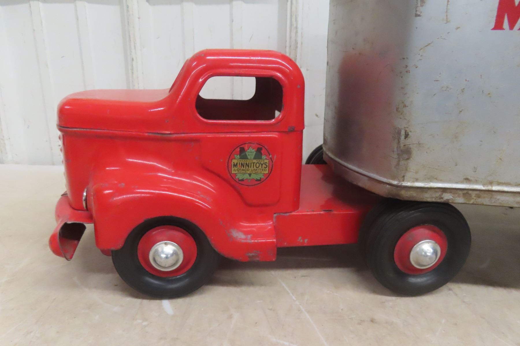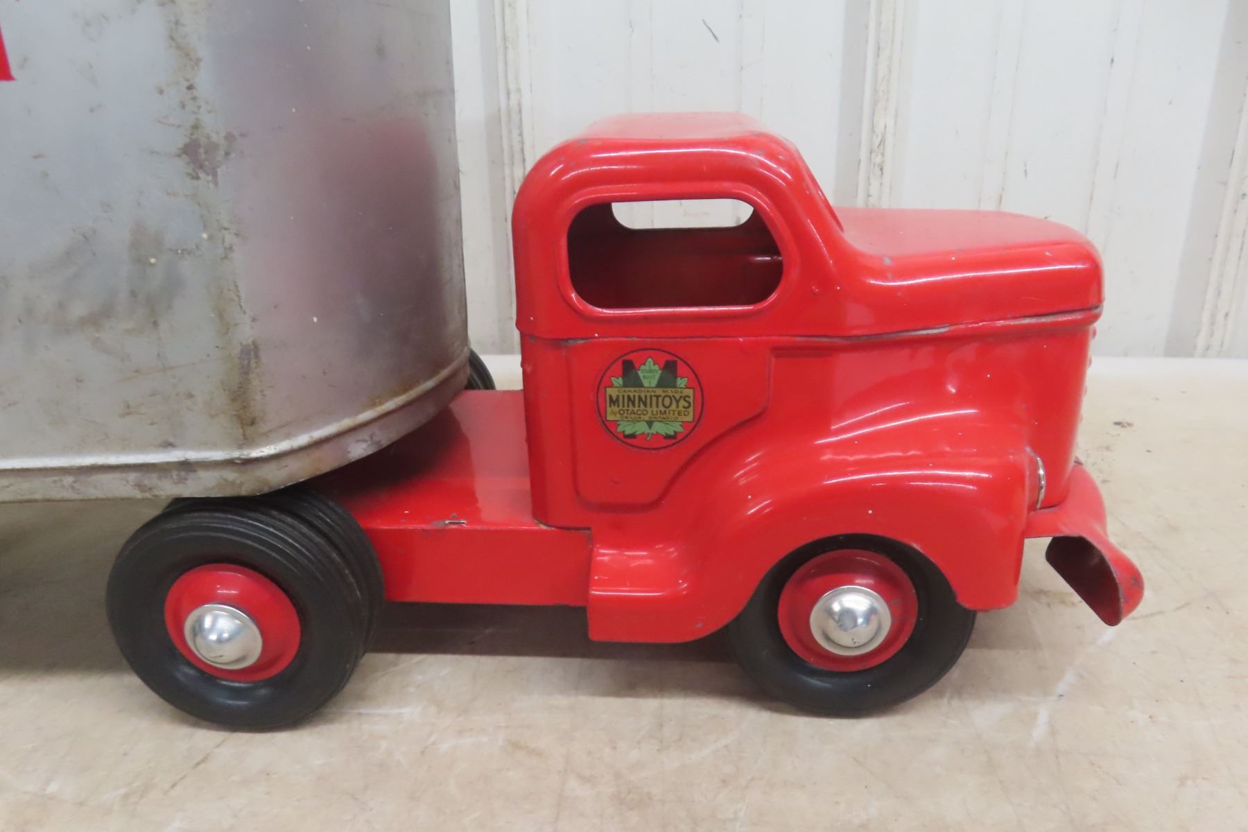 1950s Minnitoy Hi-Way Transport Pressed Metal Truck and Trailer 28'' Long