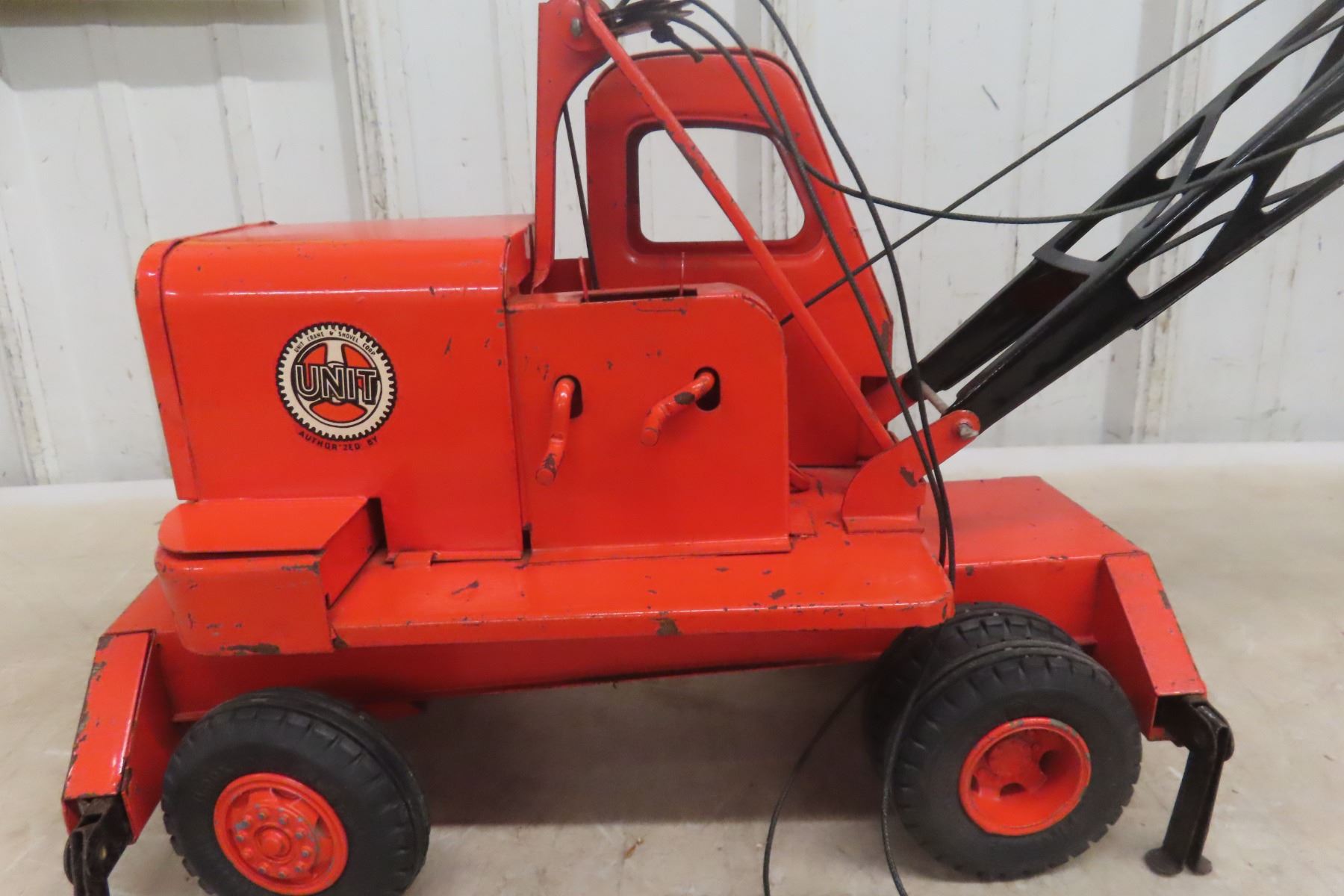 1950s Model Unit Crane Pressed Metal (Machine) 12'' Long (Crane) 22'' Long