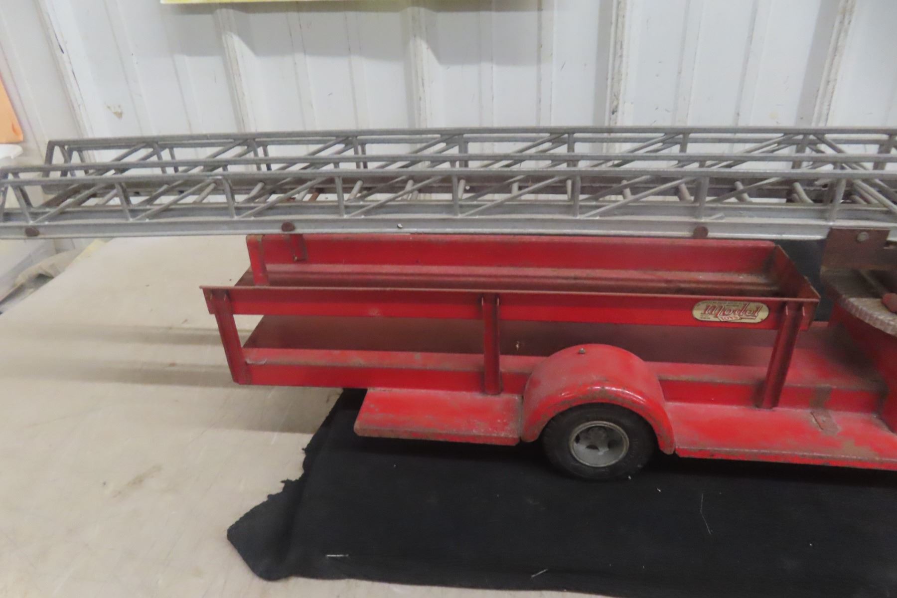 1950s Pressed Steel Doepke Model Toy Aerial Ladder Fire Truck 32" Long