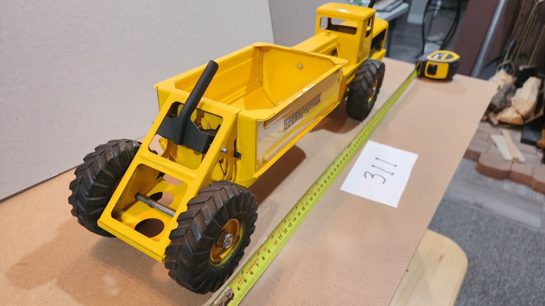 1950s VINTAGE NYLINT TOURNA HOPPER EARTH MOVER PRESSED STEEL 23 INCH.