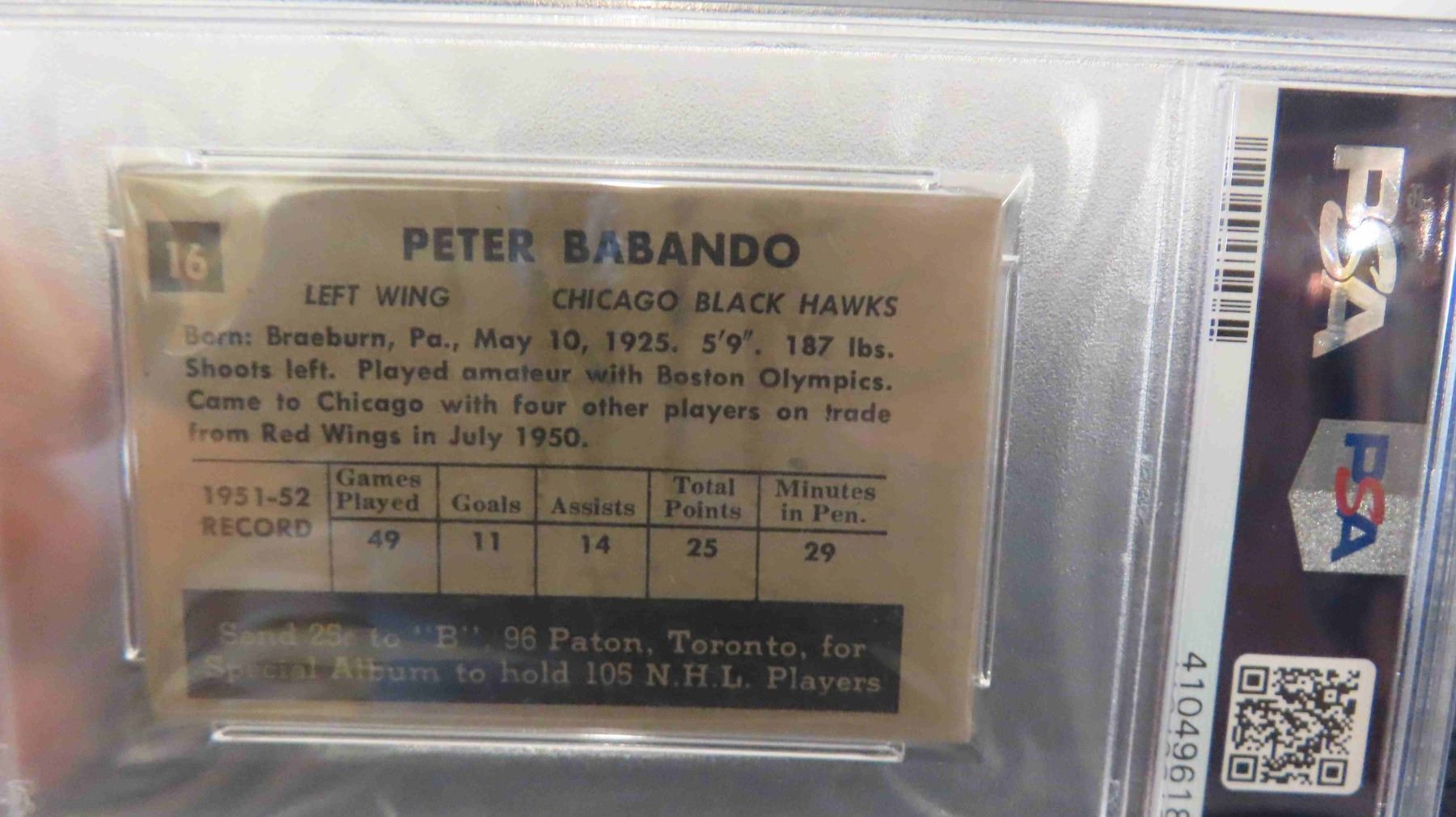 1952 Parkhurst Pete Babando Signed Card PSA/DNA #16 Authentic