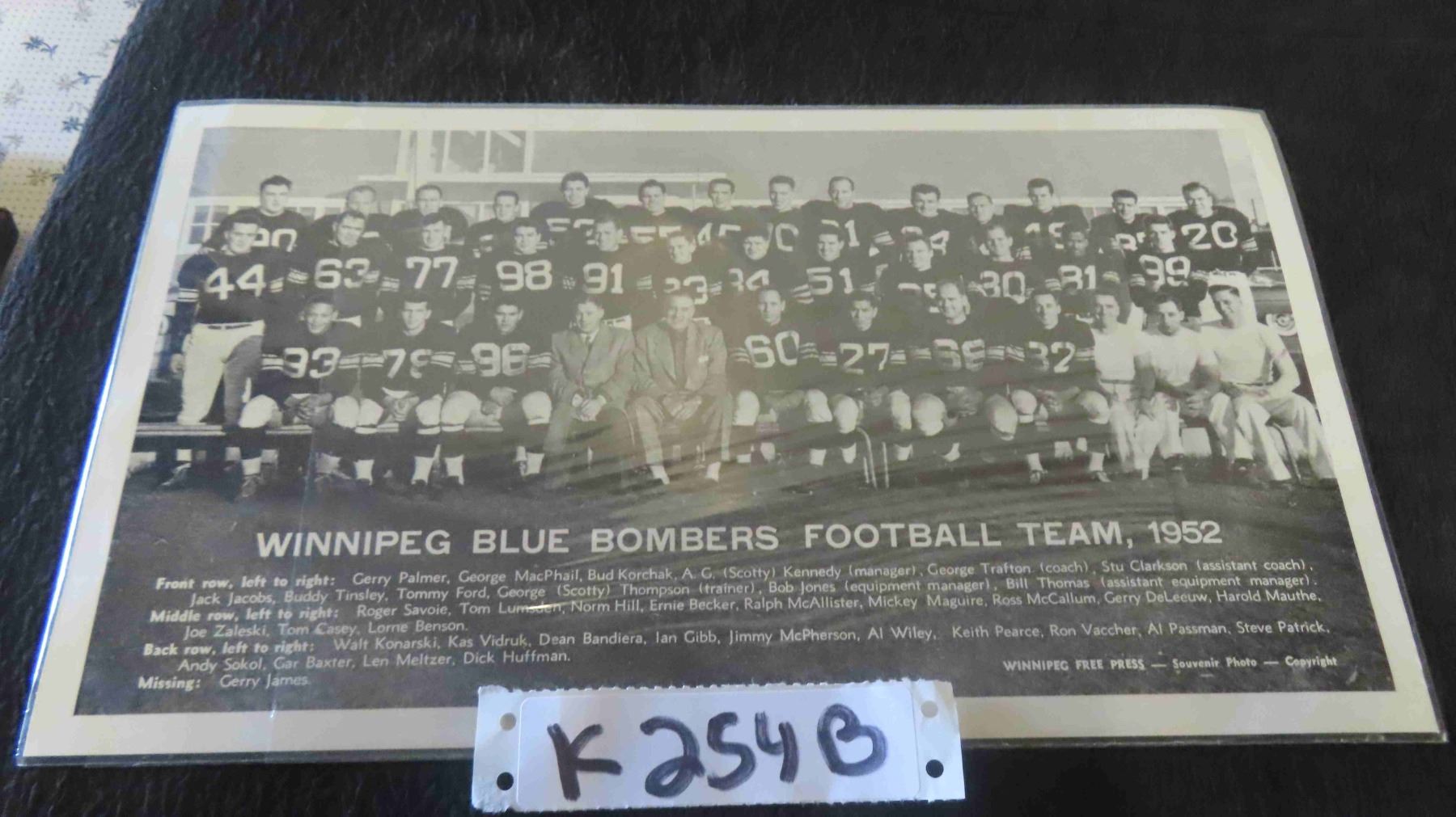 1952 Winnipeg Blue Bombers Team Photo 7 1/2'' x 12 1/2''