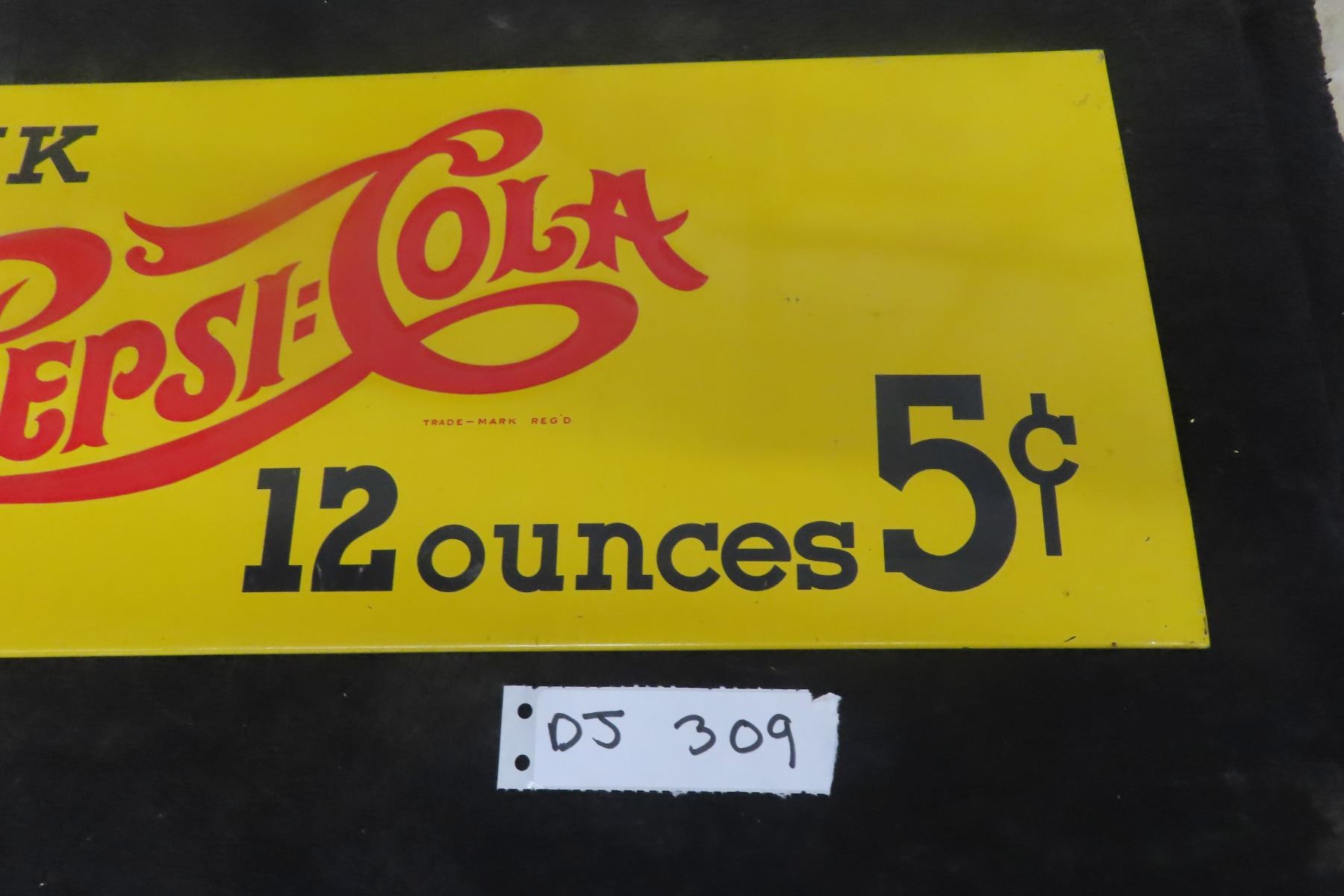 1953 Drink Pepsi Cola 12ounces 5cents Double Dot Embossed Tin Sign (No Holes) 7 1/2'' x 19 1/2''