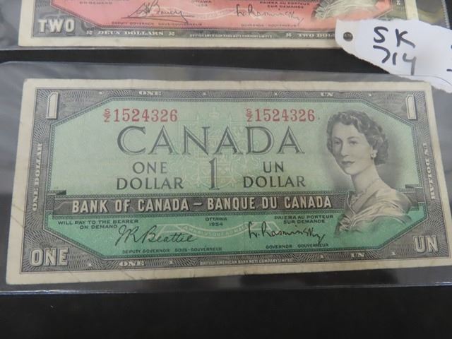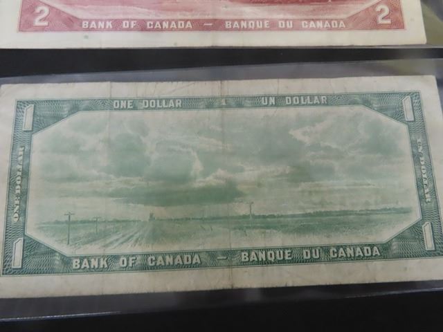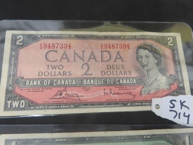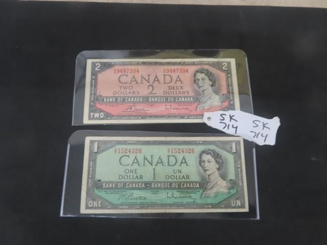 1954 $1.00 & $2.00 Canadian Dollar Bills