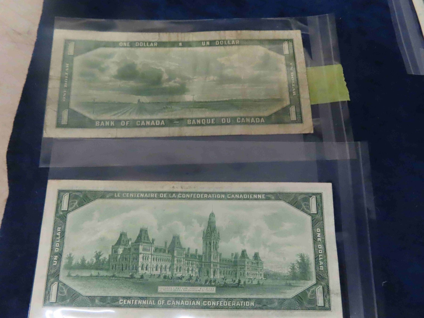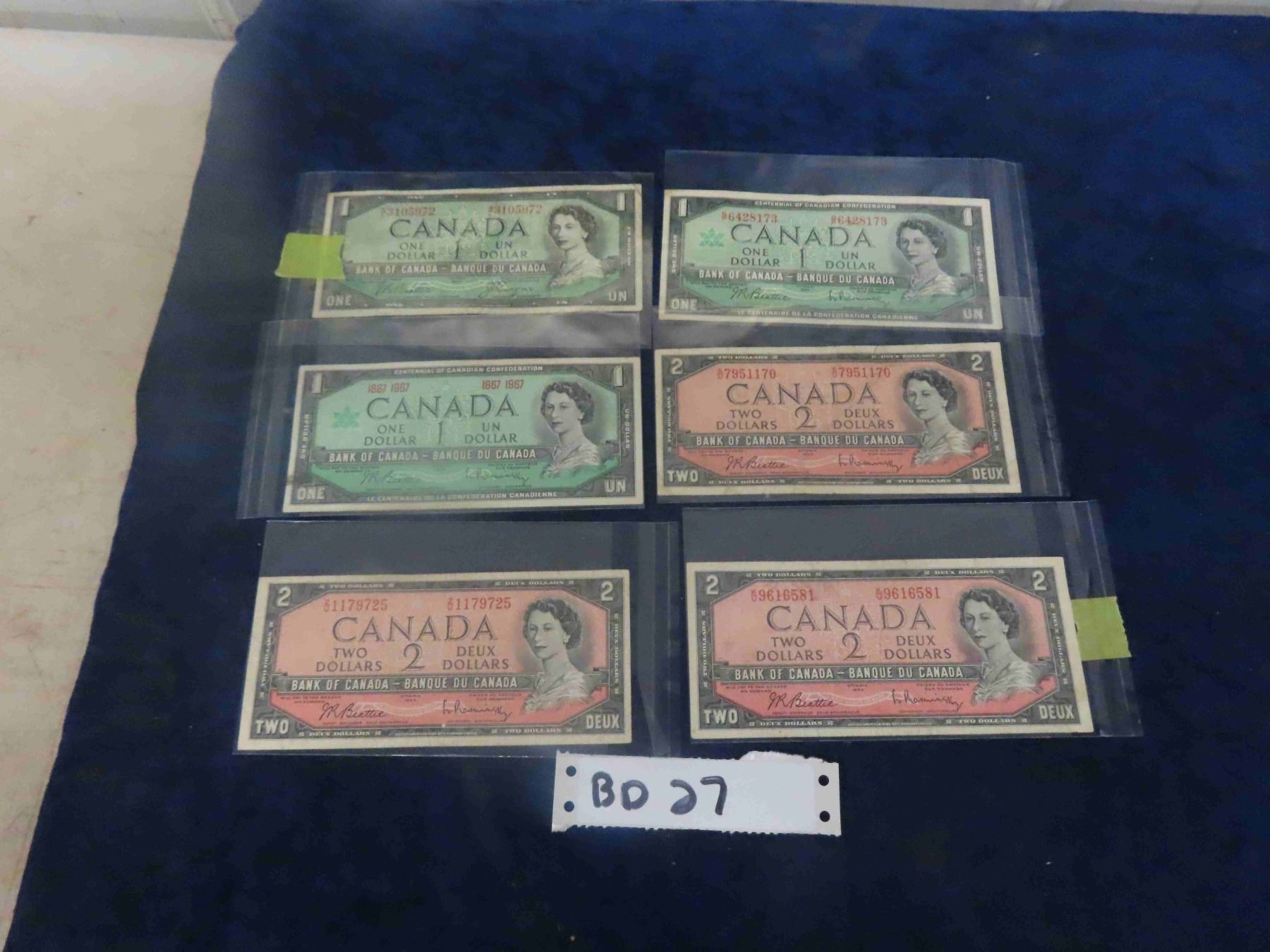 1954 + 1967 Canadian Dollars Lot ; 3 Different $1 Bills + (3) $2 Bills