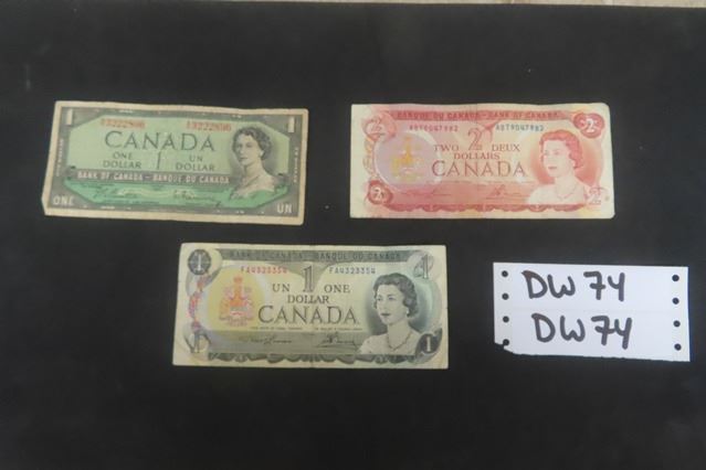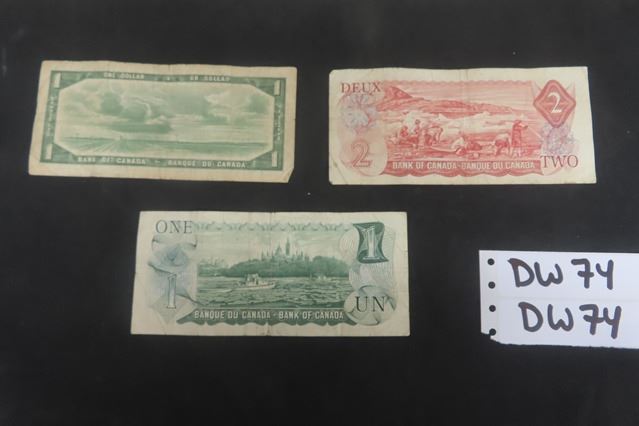1954 + 1973 $1.00 & 1974 $2.00 Canadian Paper Bills - Used