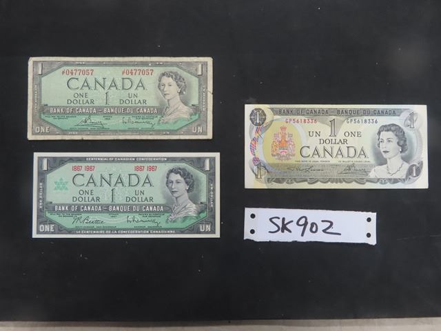1954 Canada $1 + 1967 Canada $1.00 + 1973 Canada $1.00
