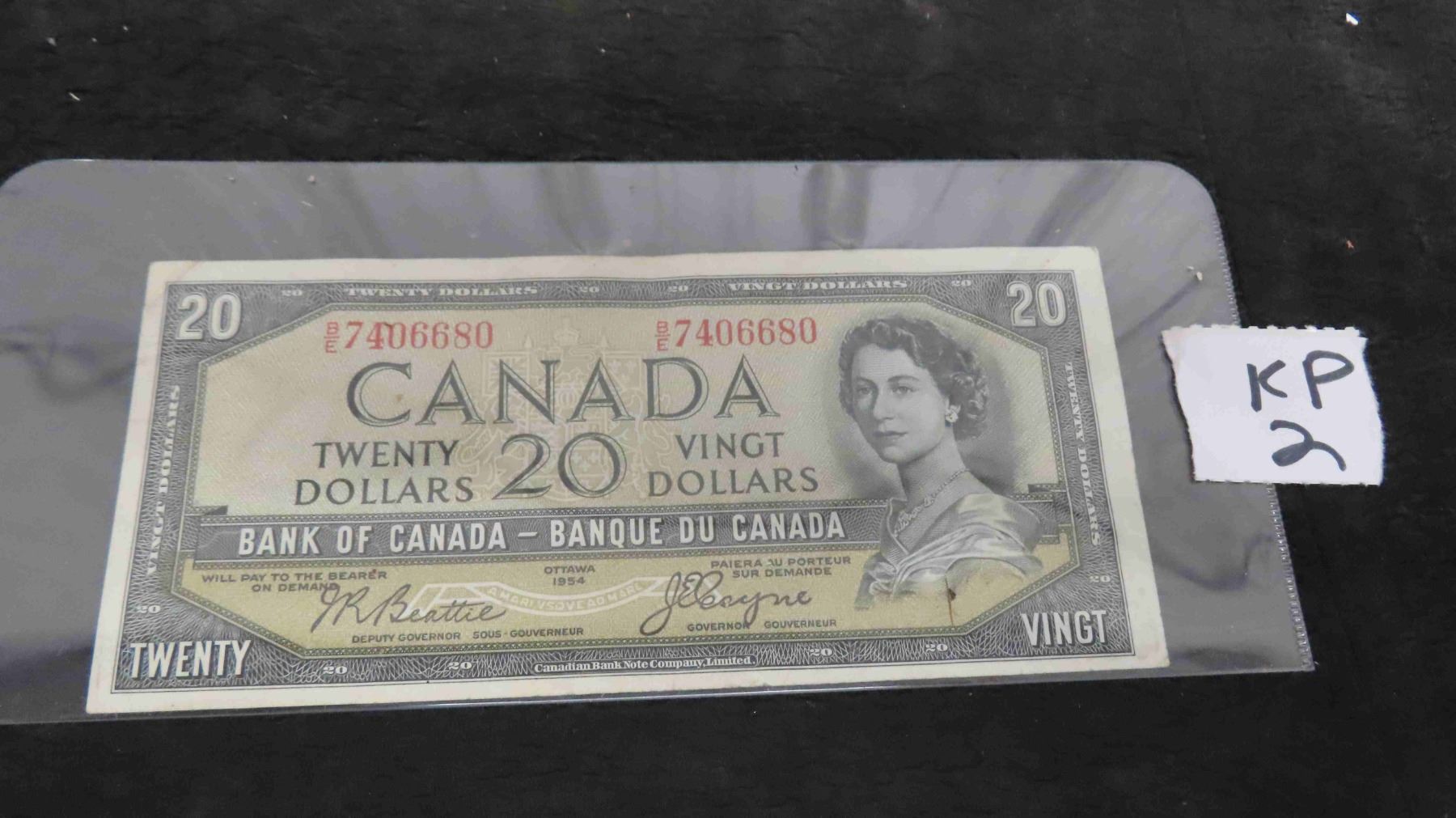 1954 Canada Devil's Face $20 Bill - Very Nice S/N 7406680