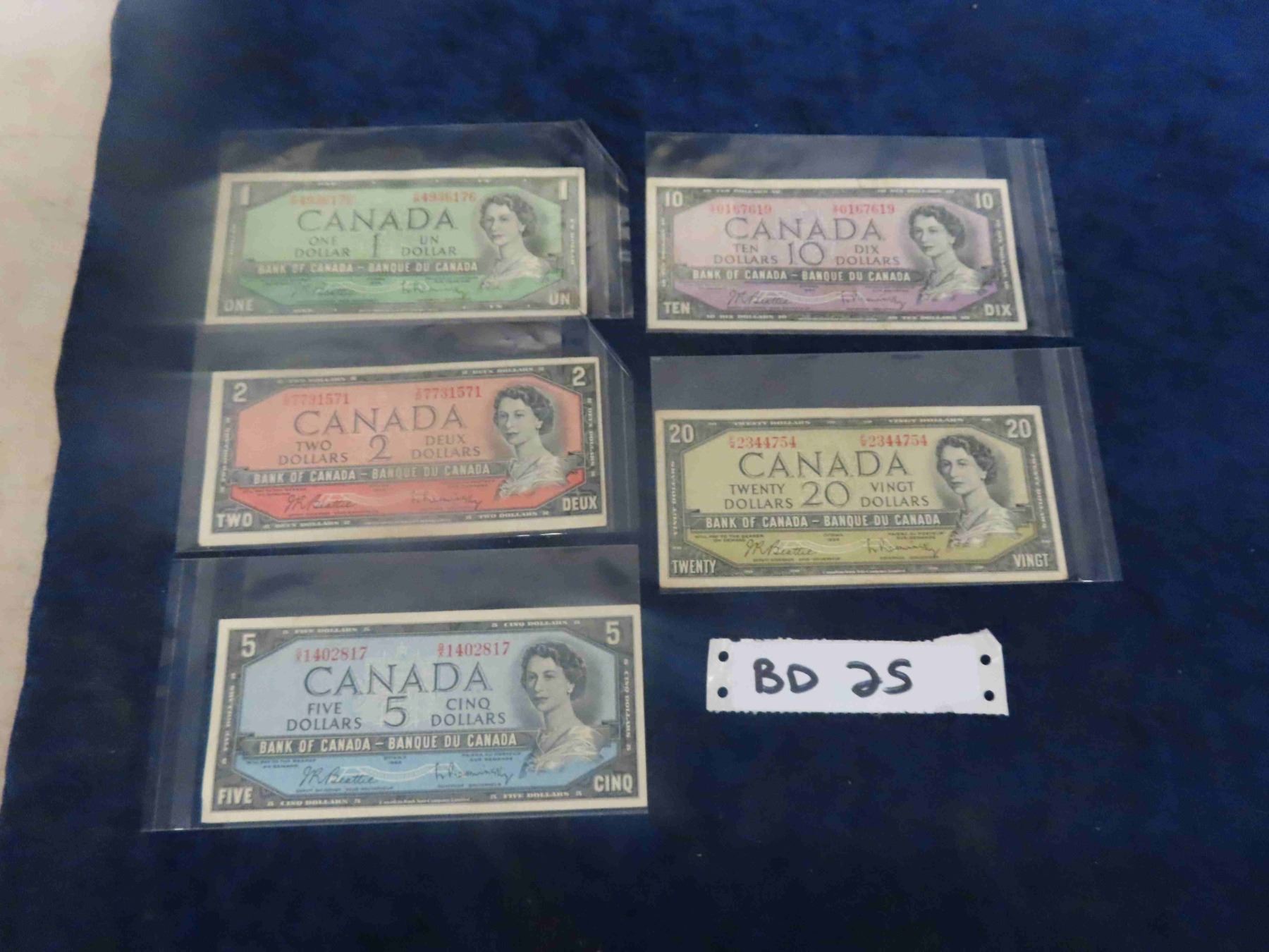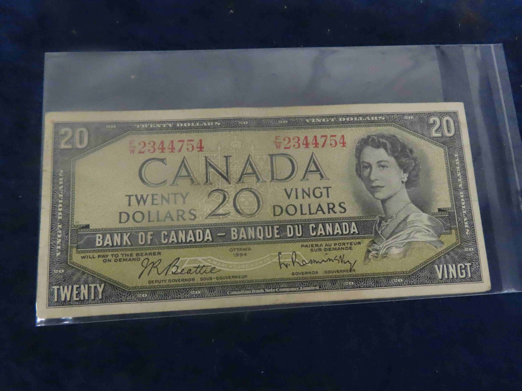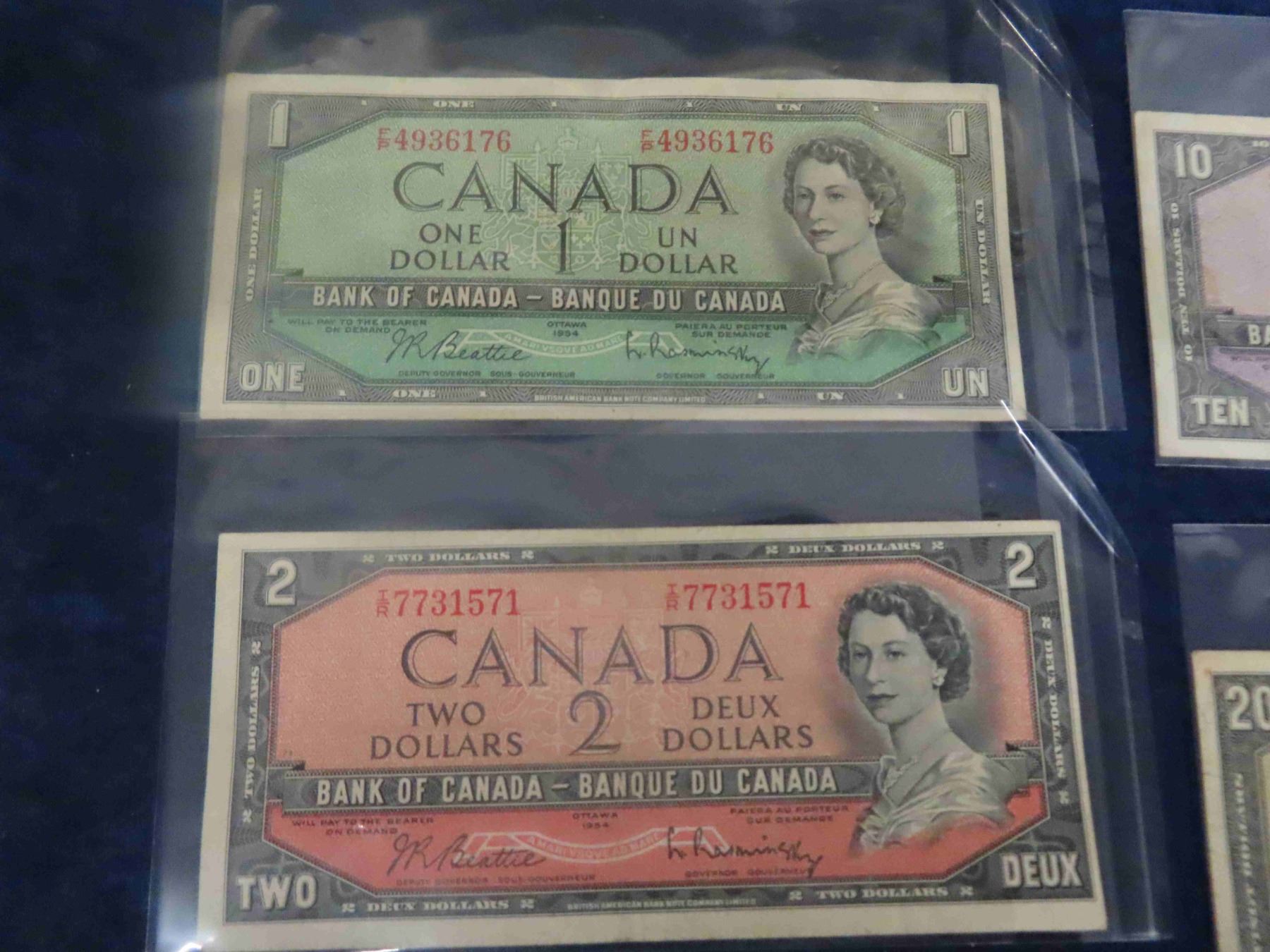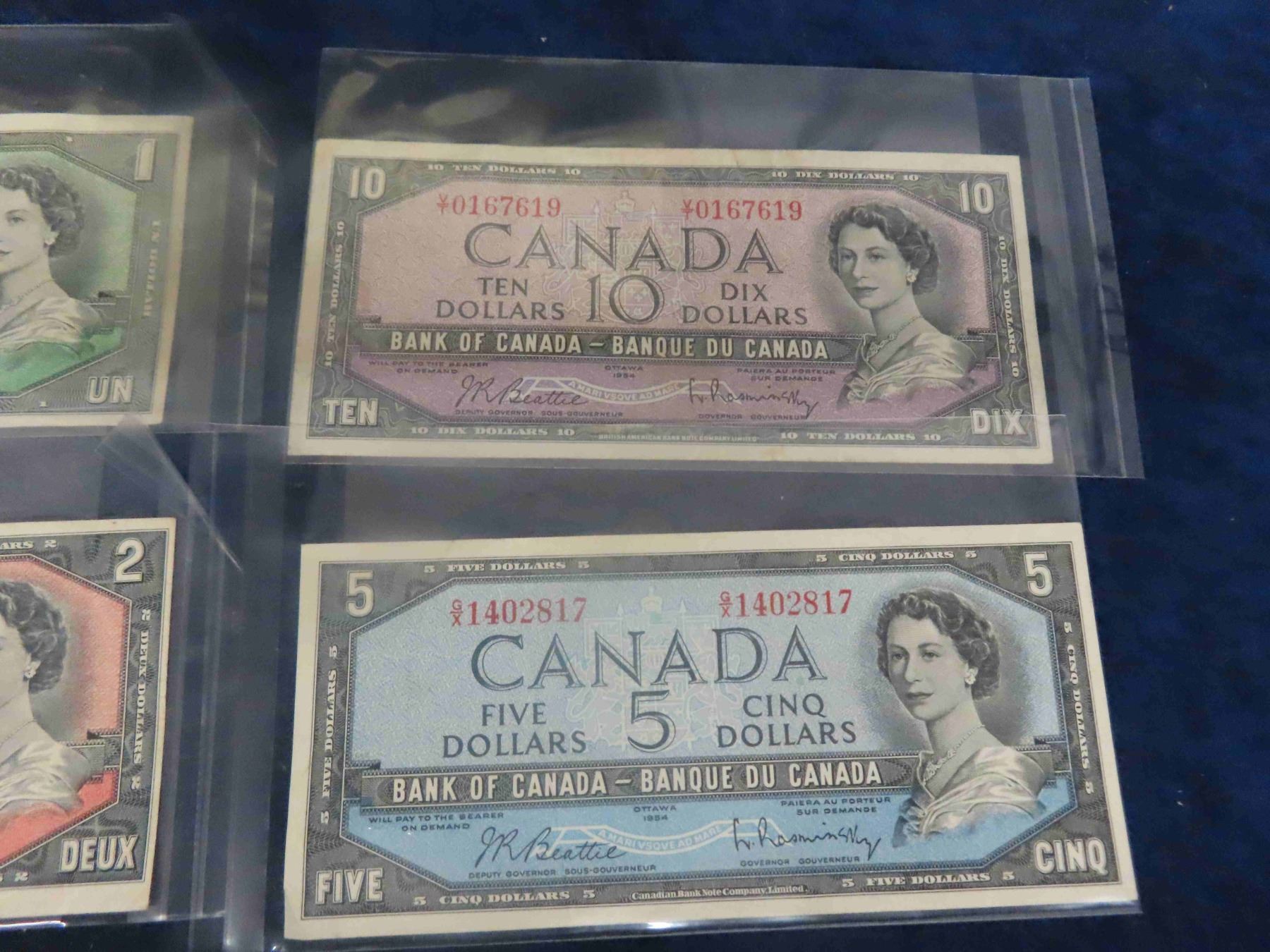 1954 Canadian Dollars Lot ; $1, $2, $5, $10, $20