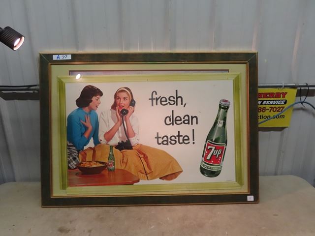 1959 7 UP Cardboard Sign Framed Up 23" x 36" is Sign Measurements