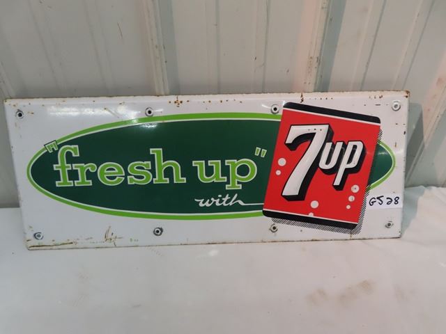 1960 Metal Embossed 7 UP Sign 9.5"x 24"