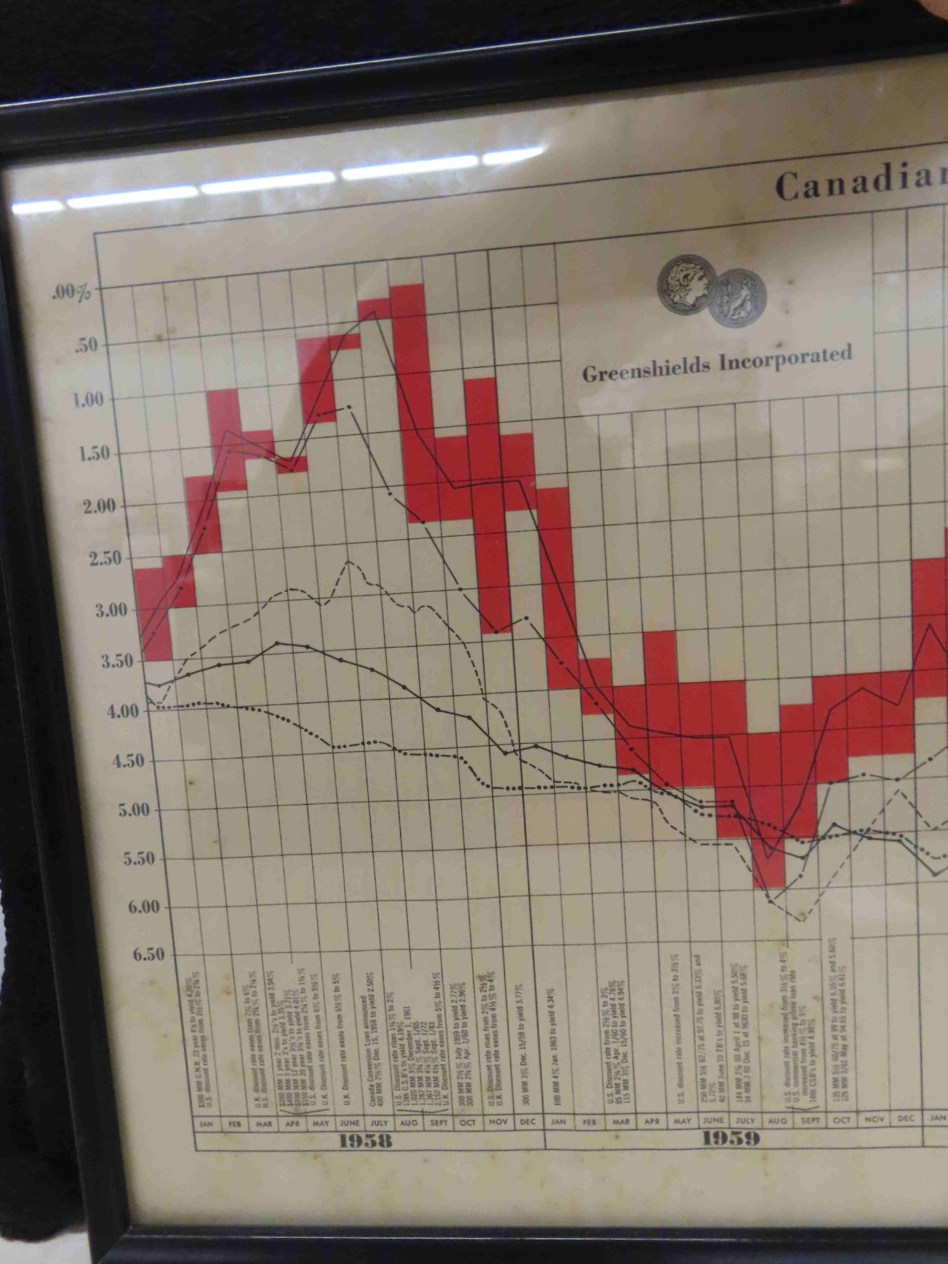 1960s Canadian Interest Rate Fluctuation Framed Chart