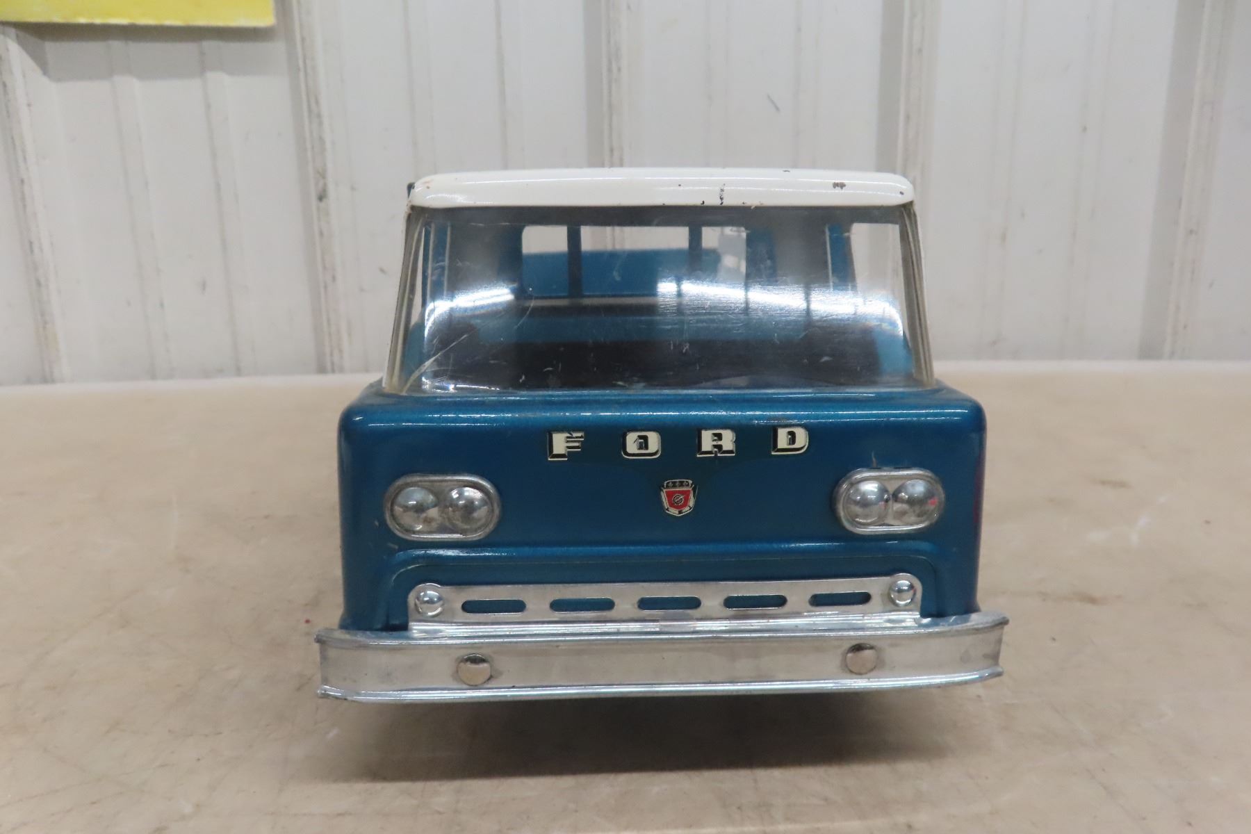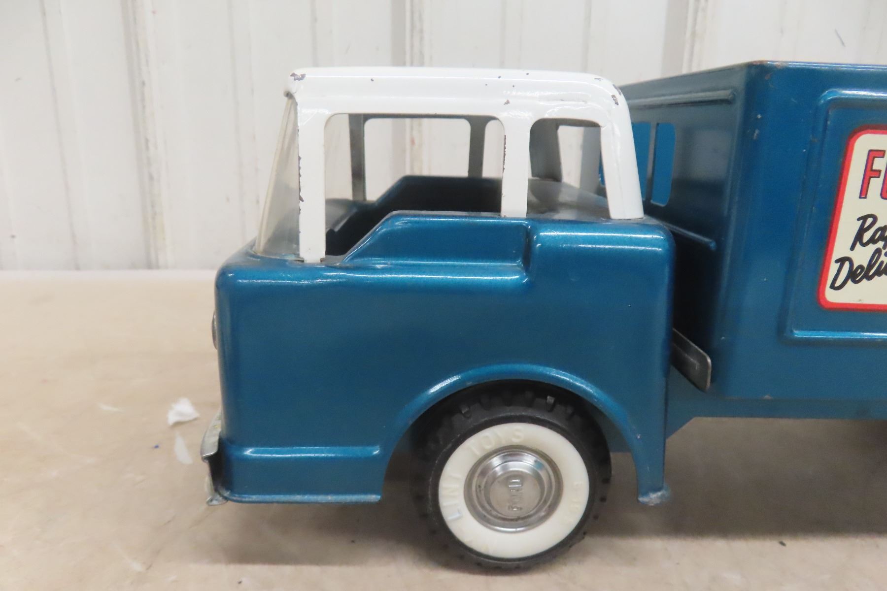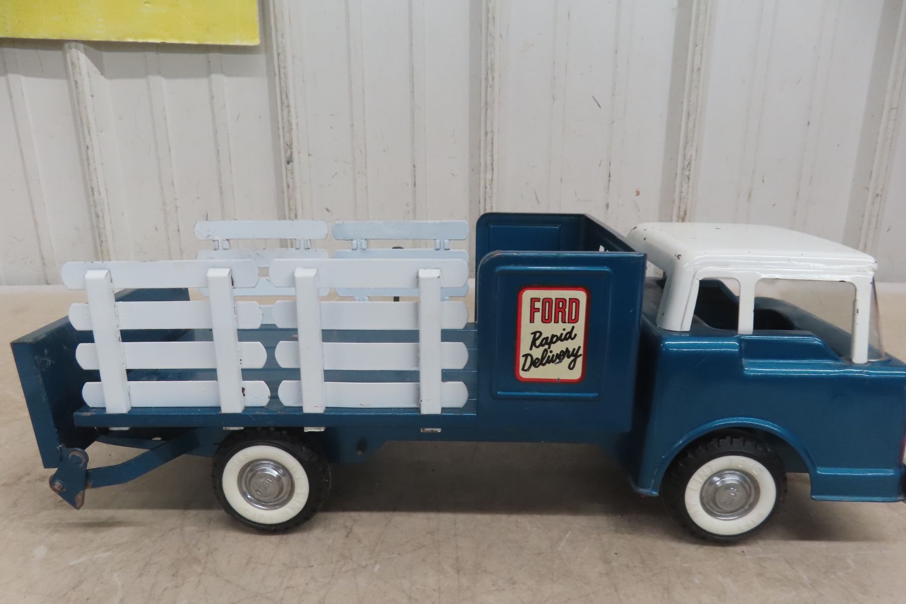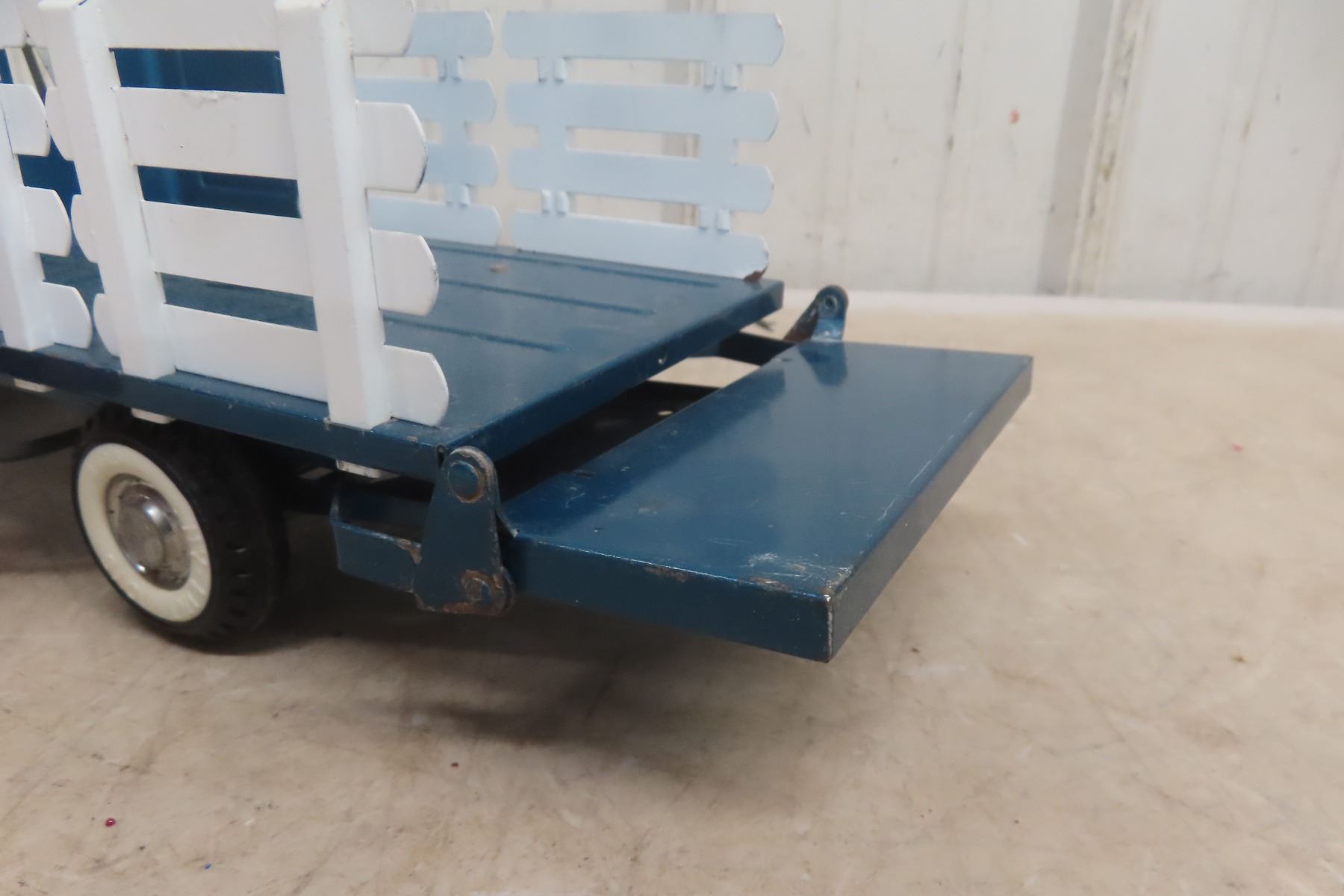 1960s Nylint Ford Rapid Delivery Pressed Metal Truck Stake Body with Power Tailgate 16'' Long