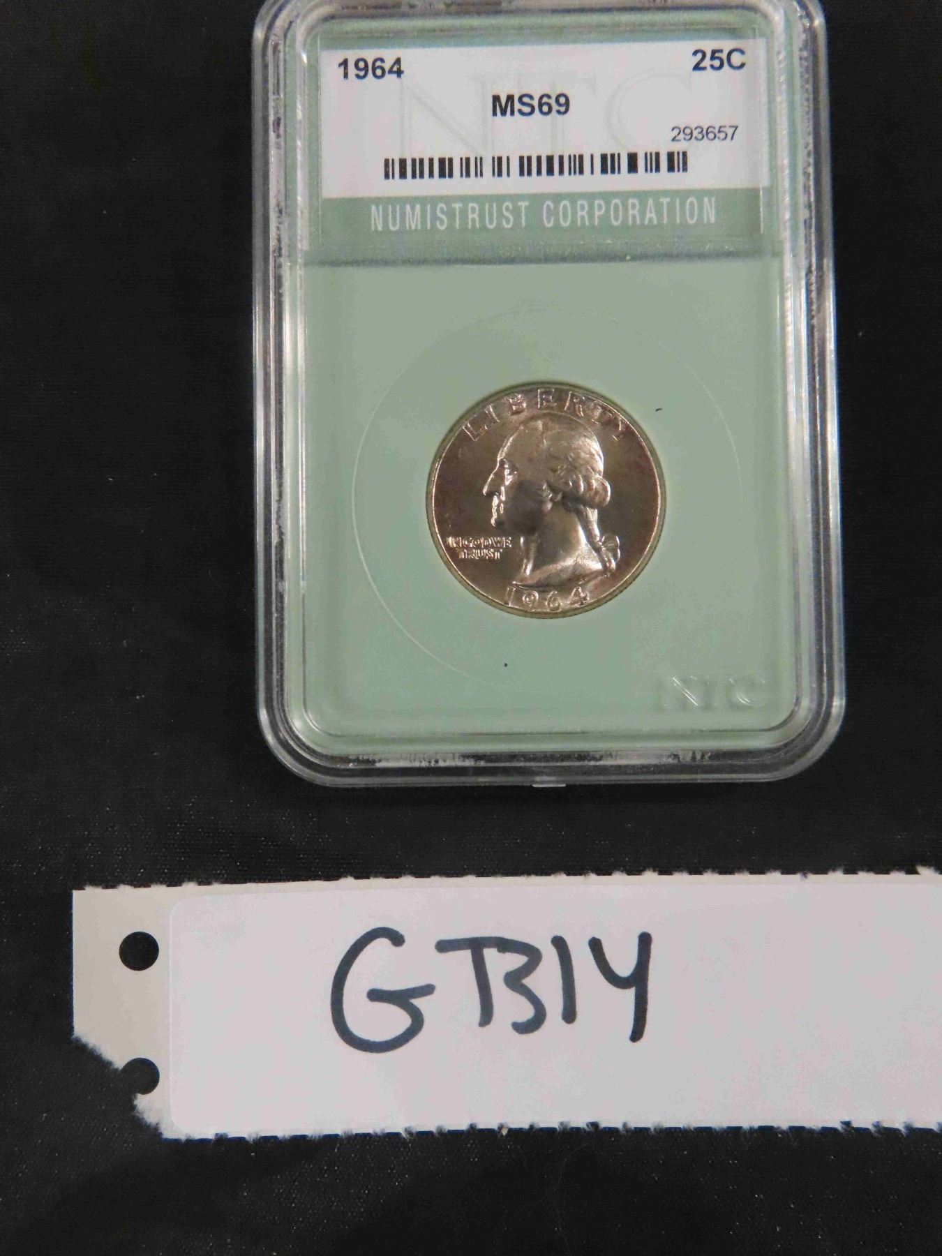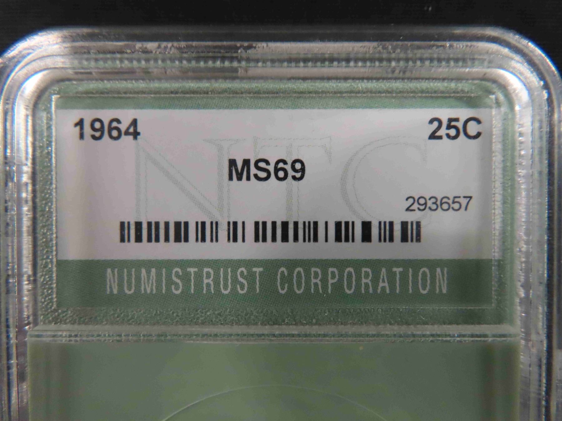 1964 US 25 Cent Coin Graded MS69 Sealed in Plastic NTC
